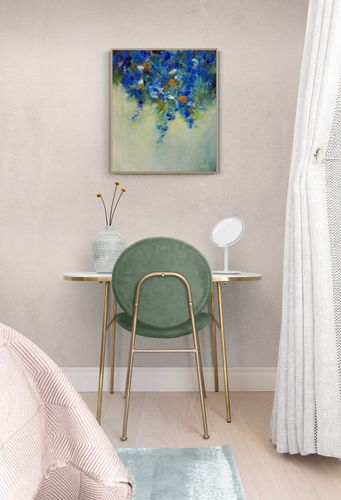 Comme un signal de départ des beaux jours au jardin, les vivaces en grappes tombantes. Composition florale abstraite réalisée à la peinture acrylique et aux marqueurs sur toile format 55 x 46 cm. La toile est recouverte d’un vernis satiné, les bords sont peints en blanc, elle est livrée prête à être accrochée sans encadrement.