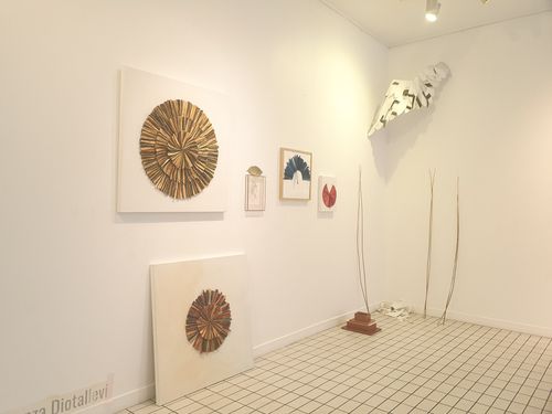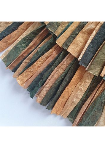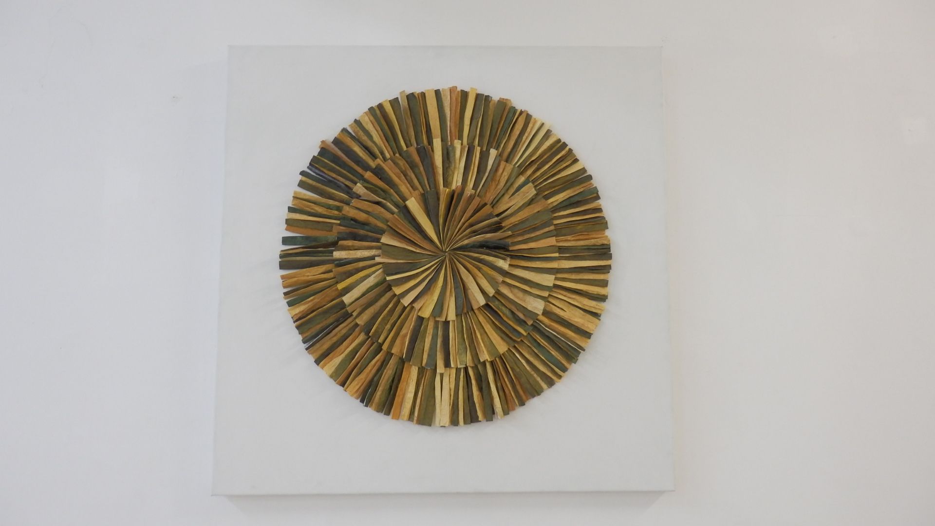 Sensible bouclier est une oeuvre sur toilede la série les Gestes du temps réalisée en 2019, dans mon Atelier @LesGrandsVoisins. Il s’agit de modules de papiers trempés dans du pigment naturel brossés à l’or et sculptés après séchage, puis cousus; Il représente la temporalité des gestes inspirés par les artisans du monde qui par leur pratiques et savoirs faire, transforment notre perception de la matière naturelle. C’est également une ode à la sensibilité des peuples premiers amérindiens. Mouvement algorithmique du cercle a la rencontre du réel.