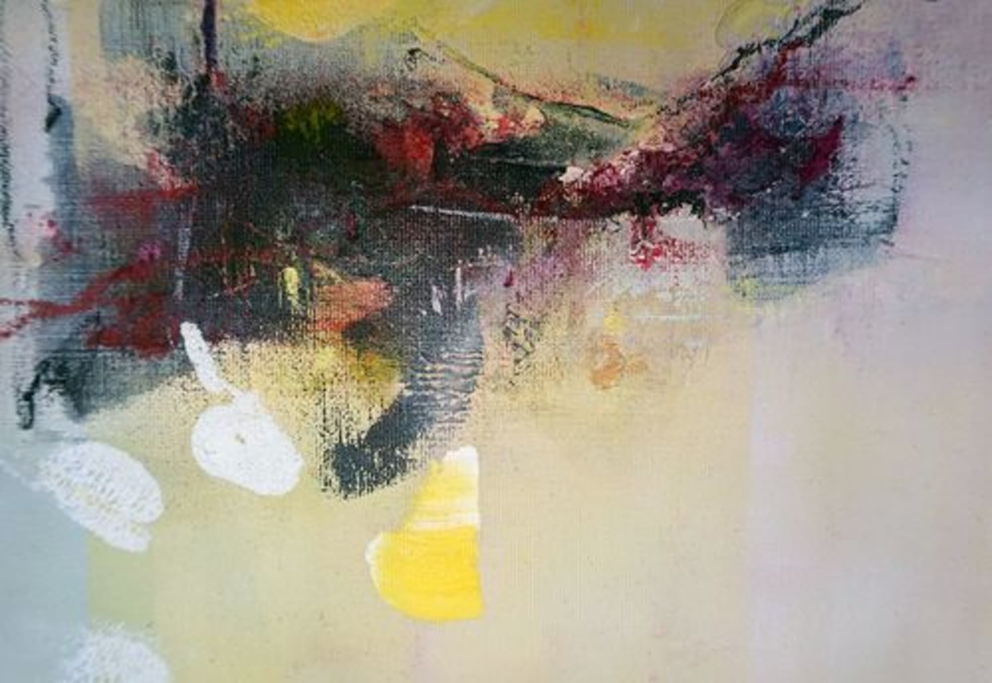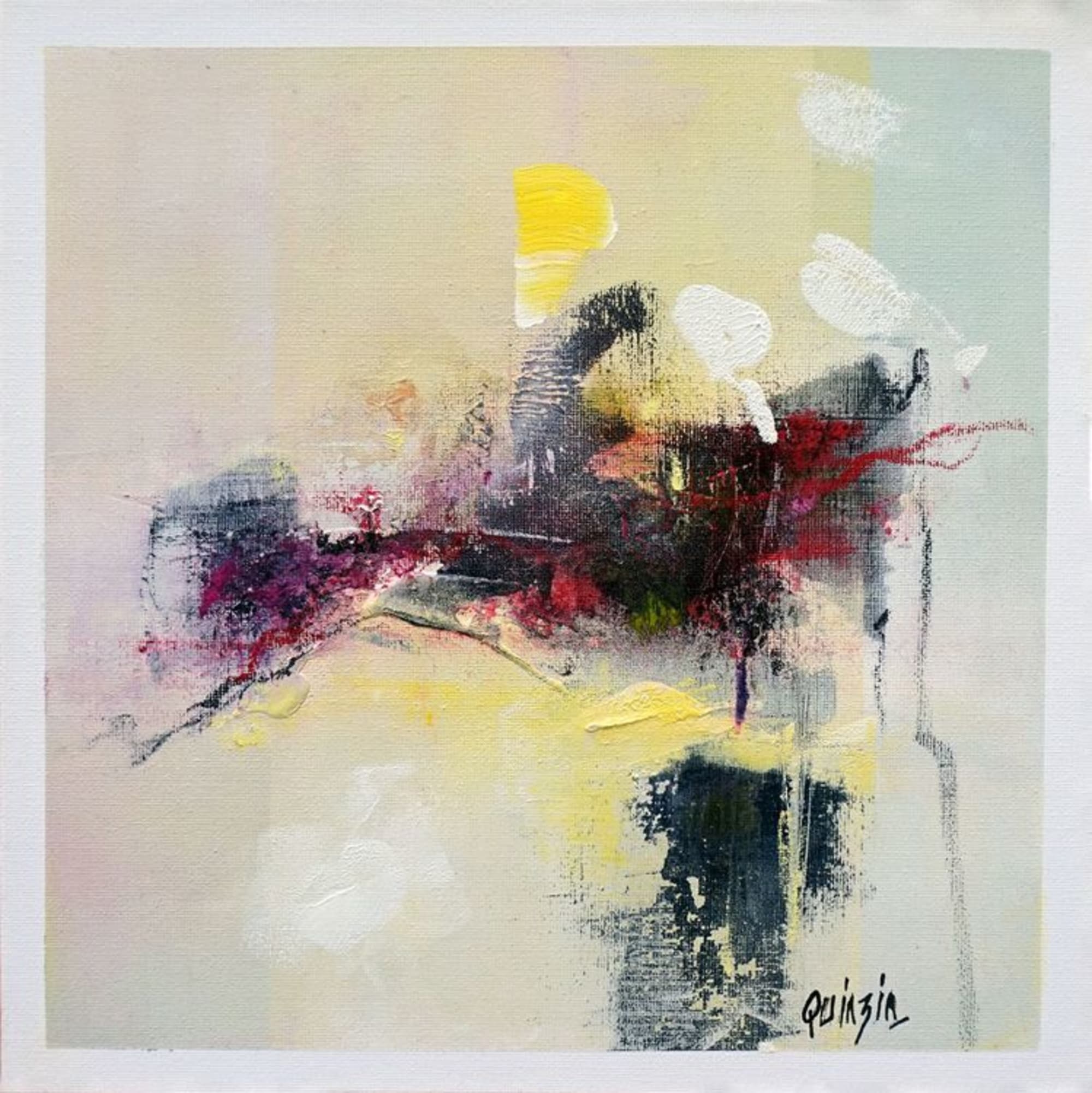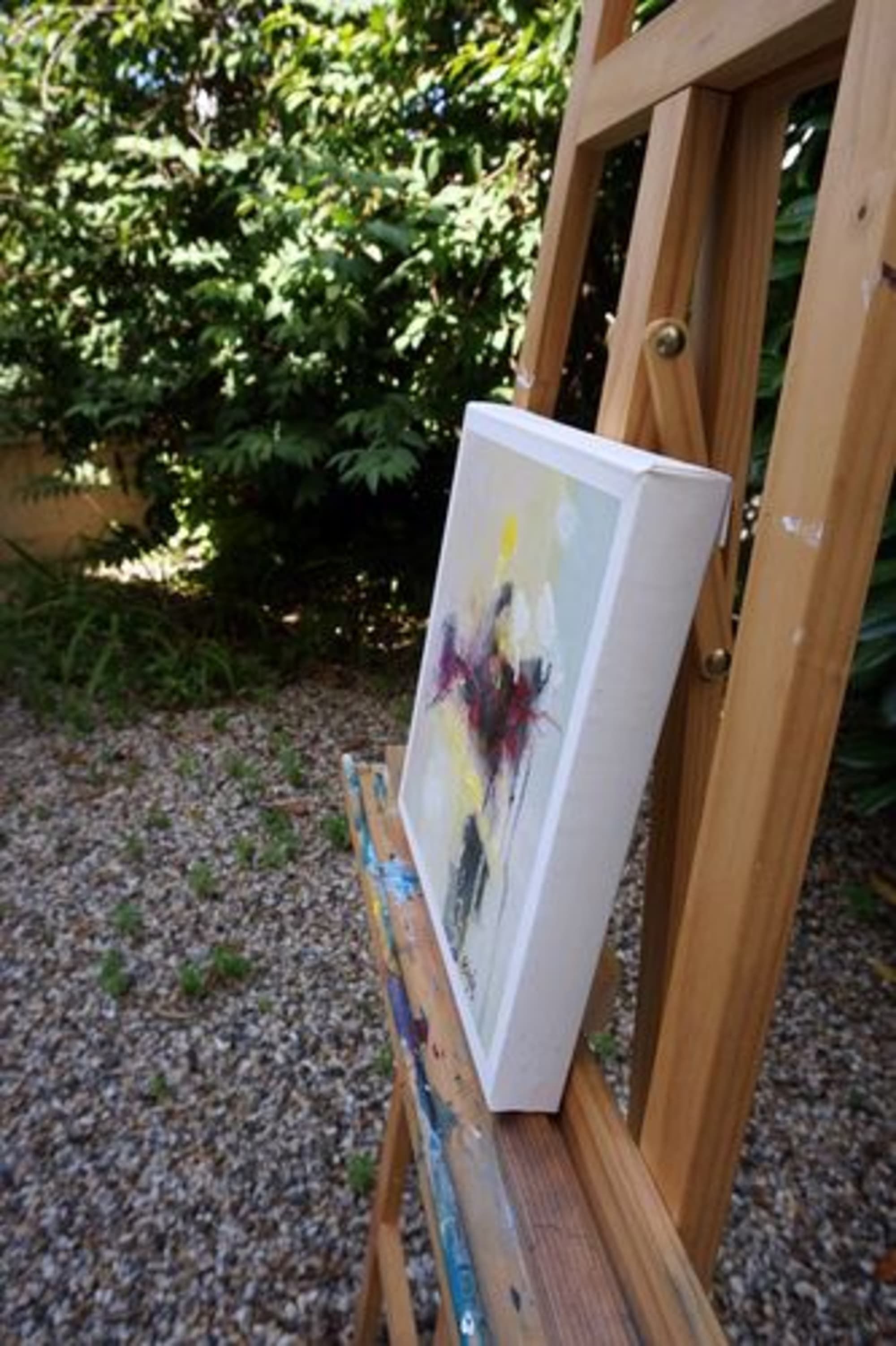 Ouverture sur un espace imaginaire dans des tonalités de jaune. Travail sur l’opposition et la dualité de couleurs réalisé aux pigments purs, aux pastels à l’huile et à la peinture acrylique sur une toile 3d format 29 x 29 cm.