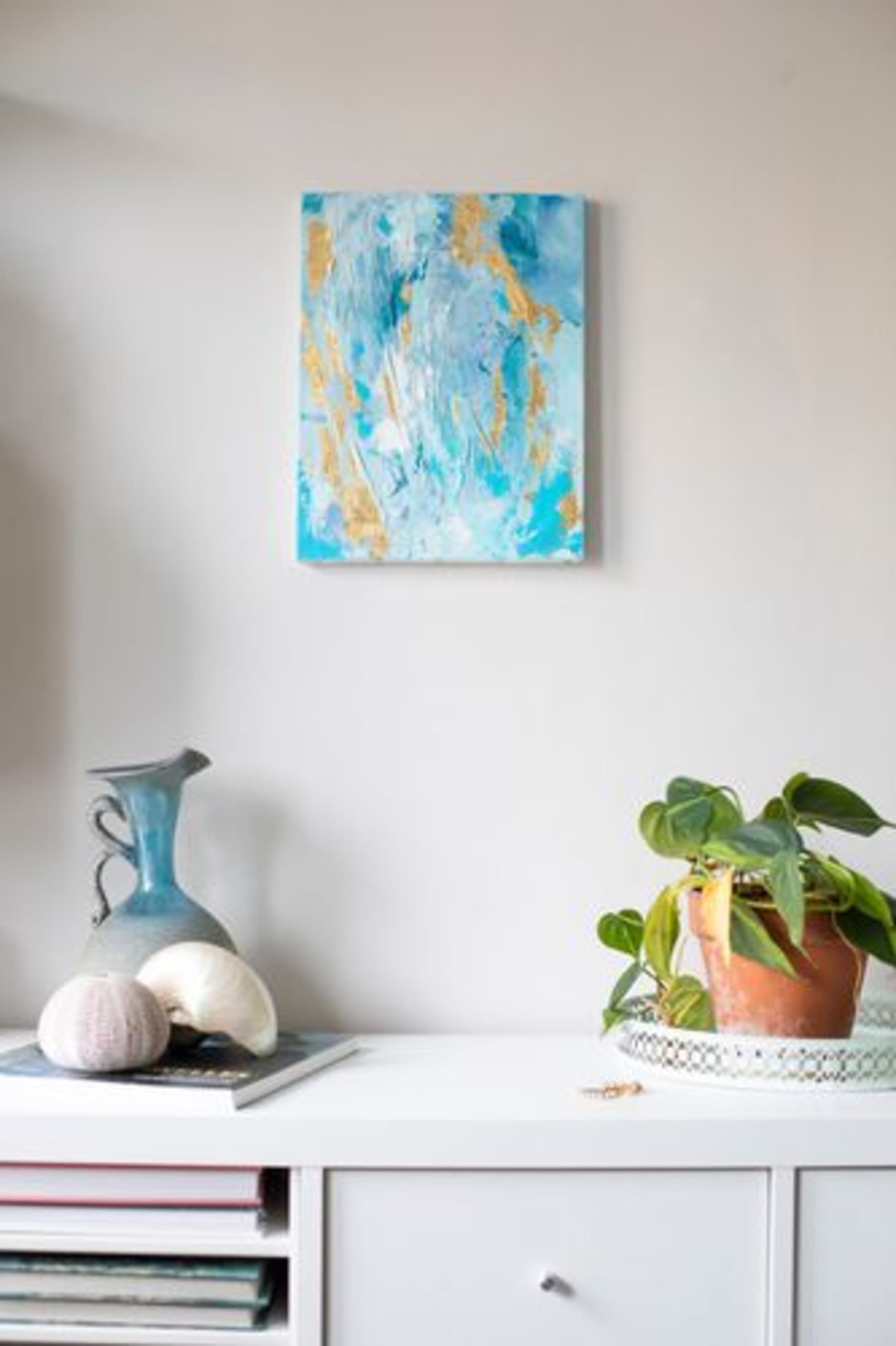 Techniques mixtes sur toile enrichie à la feuille d’or.