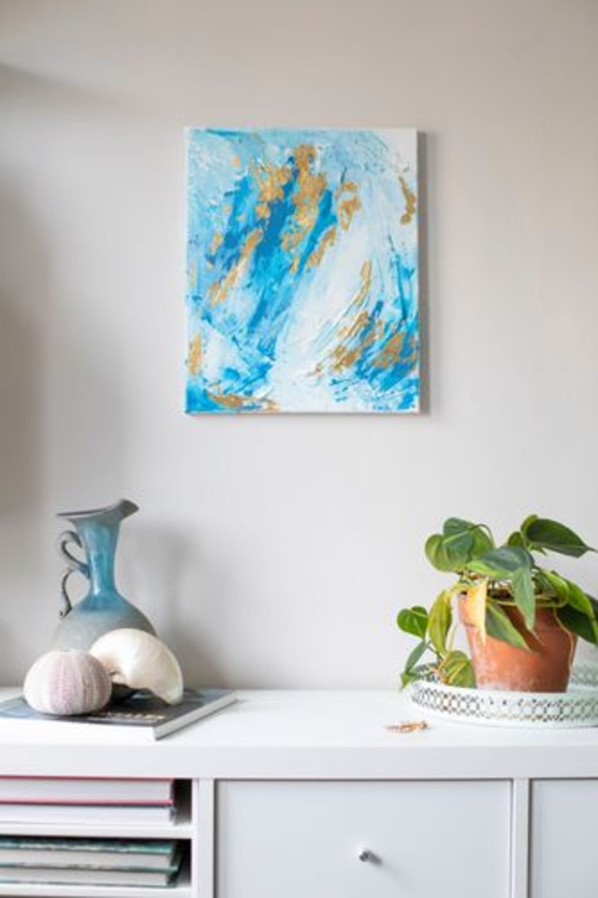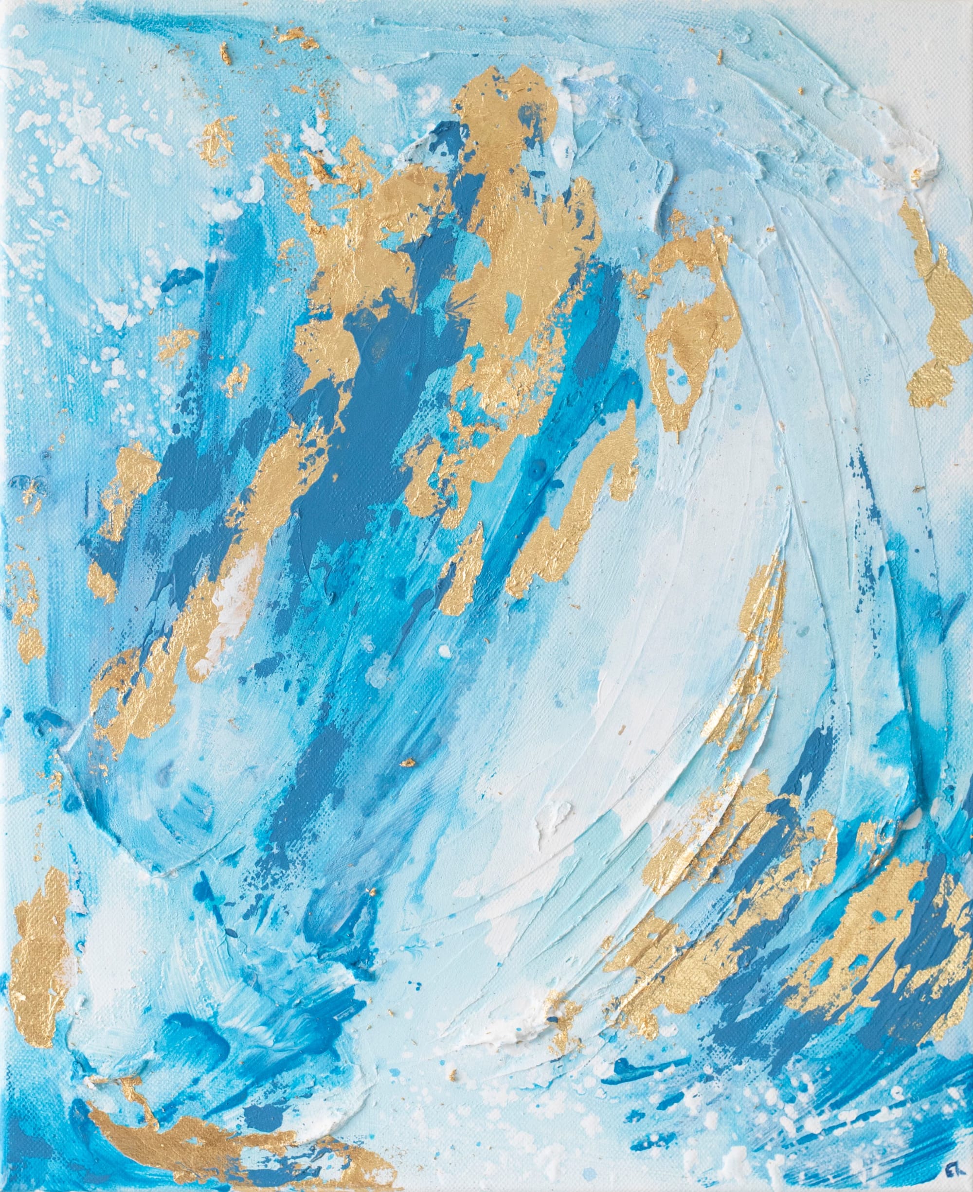Techniques mixtes sur toile enrichie à la feuille d’or.