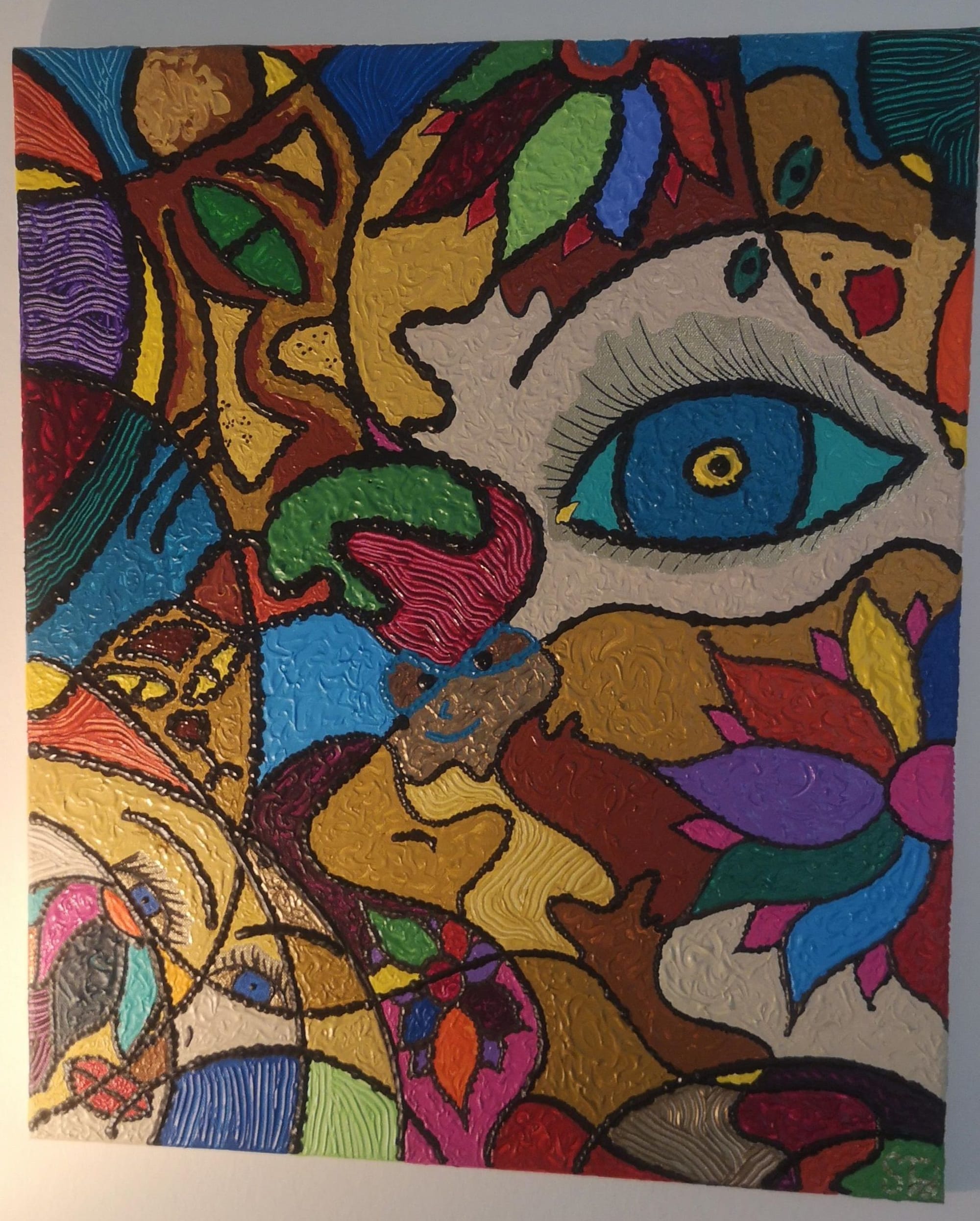 “Méli-Mélo” propose de découvrir des visages de profil et de face, des têtes de félins, tout ça au milieu d’un monde coloré…