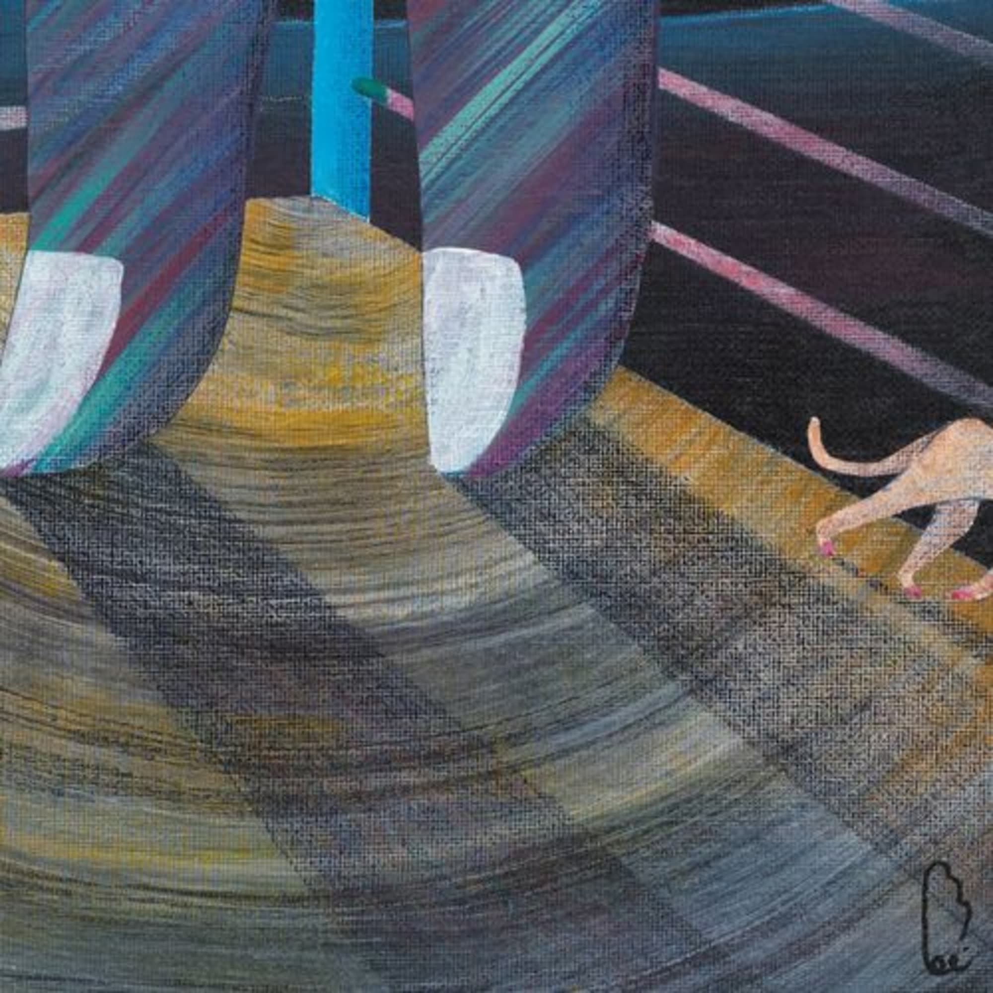 acrylique, crayons de couleur & marqueur à peinture noir sur carton entoilé