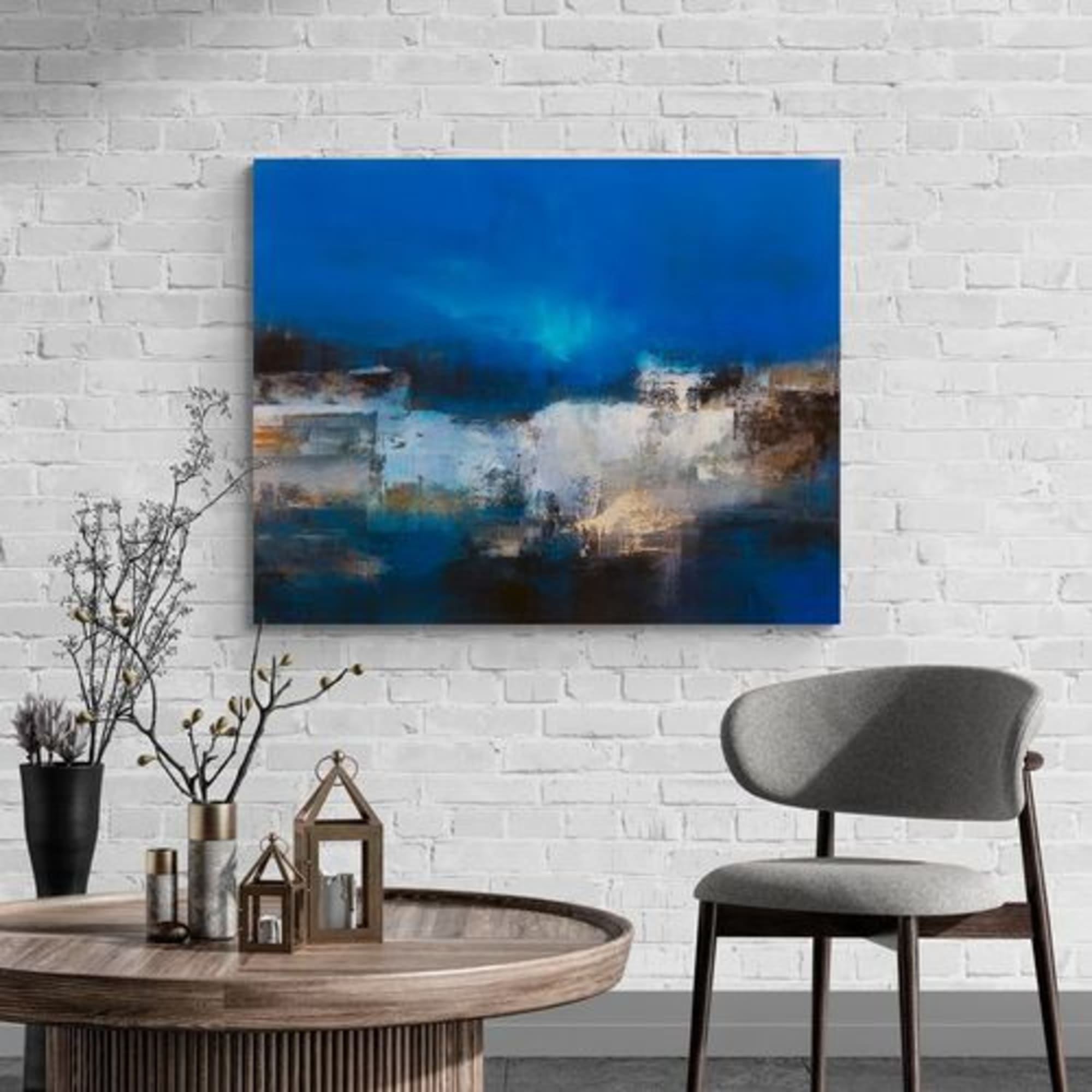 Les bords sont peints en blanc, la toile est recouverte d’un vernis mat, elle est livrée prête à être accrochée.