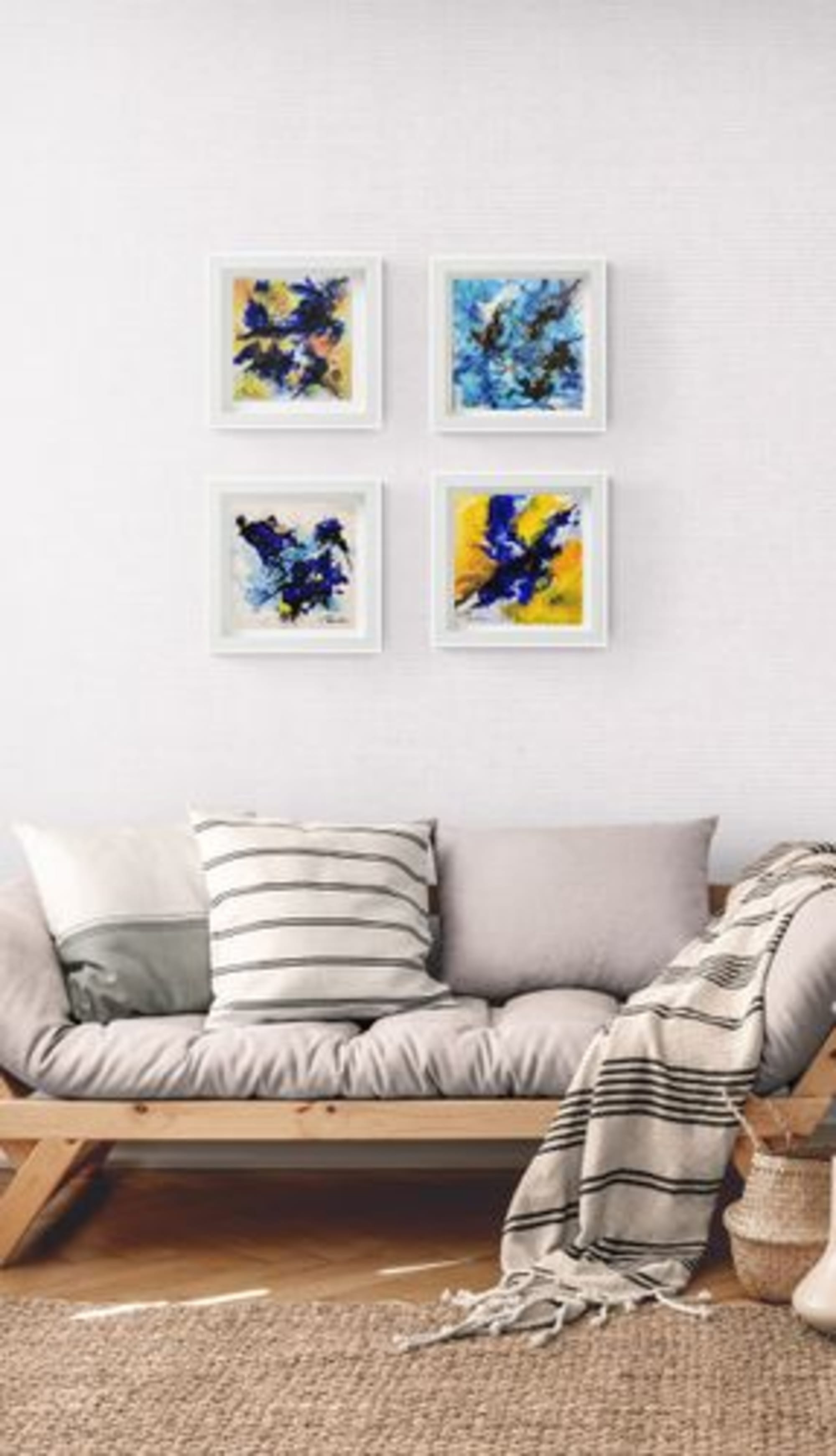 peinture sur panneau 25x25 cm cadre blanc 32x32cm 4cm epaisseur montage 3d