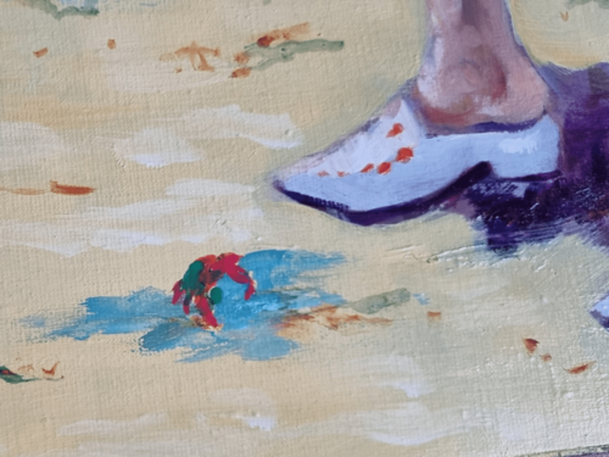 Dans cette œuvre, j’ai capturé l’innocence et la curiosité à travers la dynamique entre l’enfant et la créature. Avec des coups de pinceau impressionnistes et des nuances d’huile vibrantes, chaque regard insuffle vie et énergie, invitant à un dialogue silencieux mais poignant. C’est une célébration de la découverte et du lien pur qui apportera une touche de tendresse et d’émerveillement dans votre foyer. La plage , l’enfant, le crabe et le petit chien…