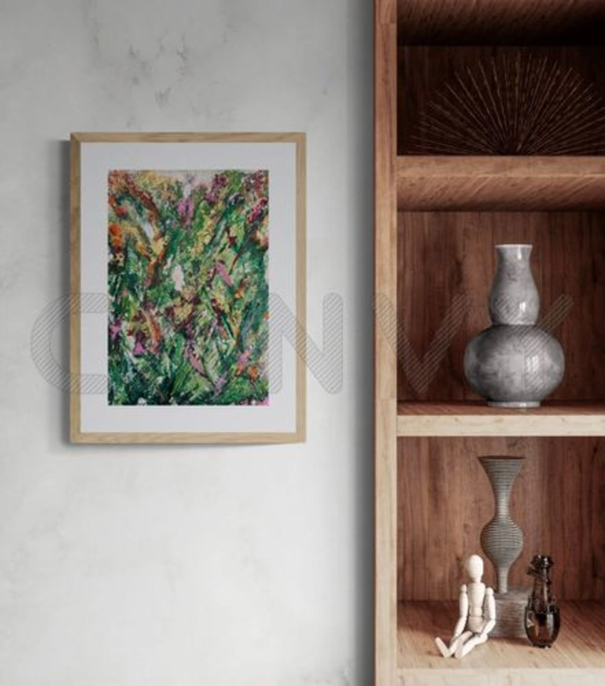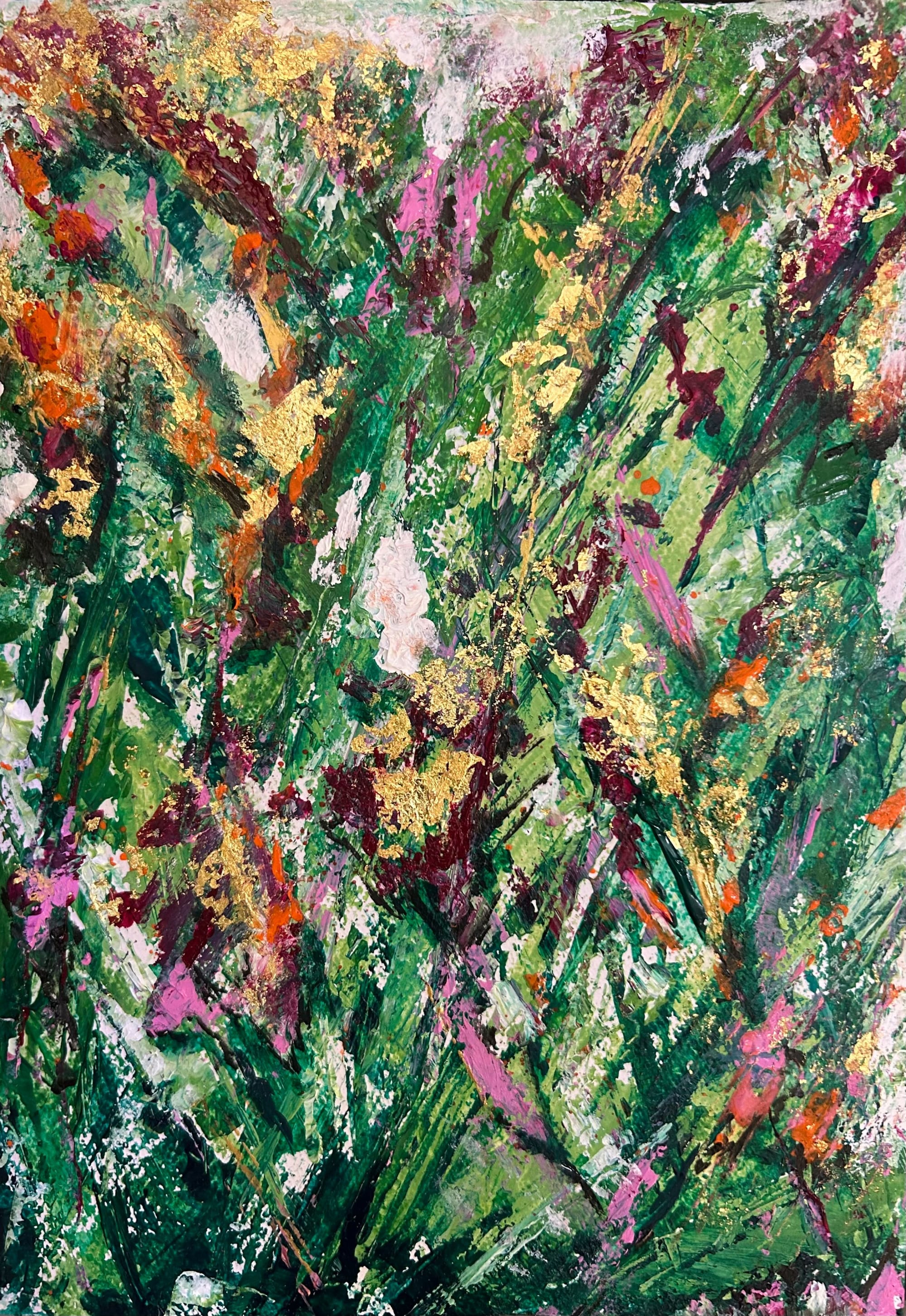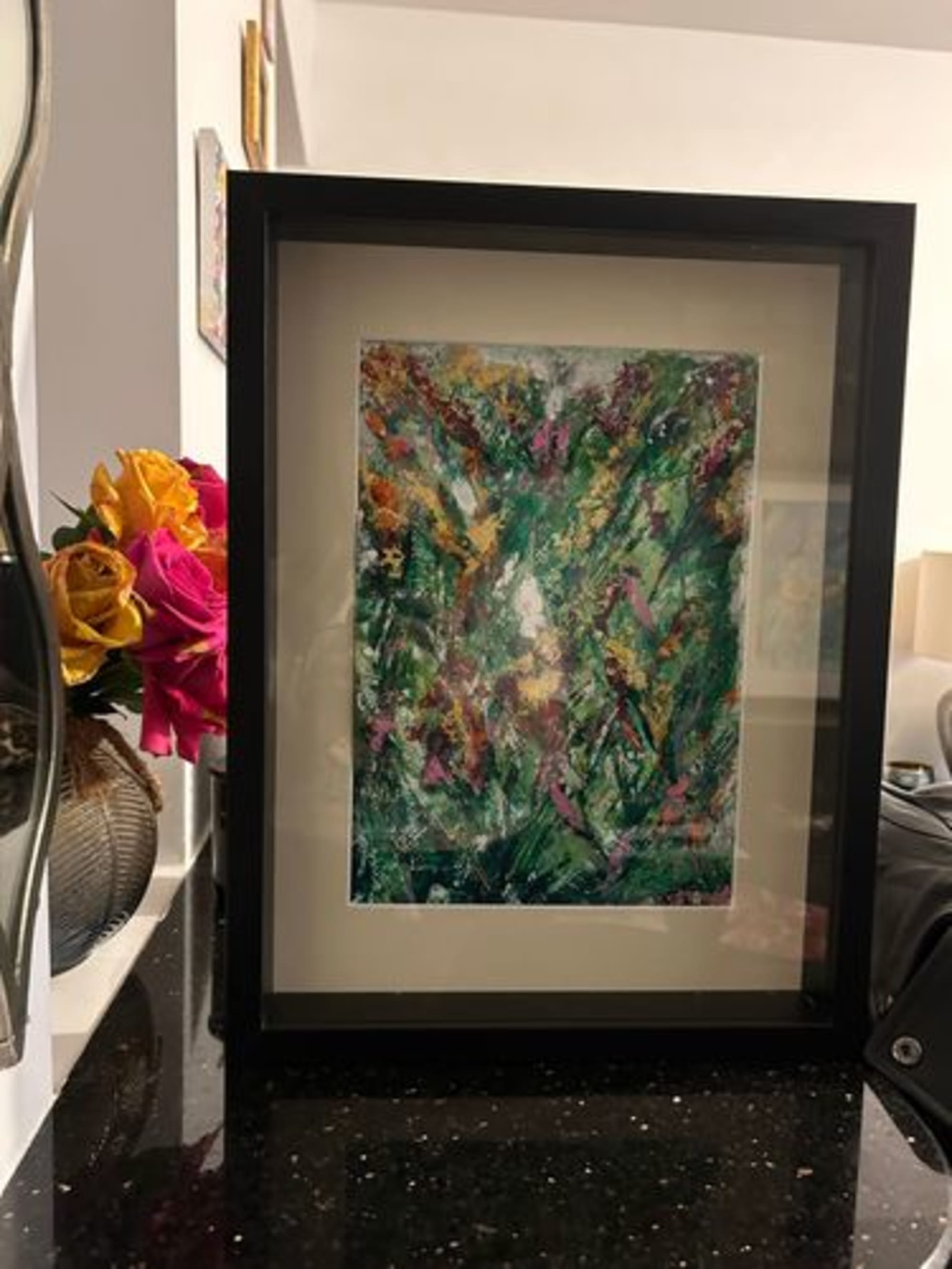 Technique mixte sur papier avec feuille d’or 24 carats, œuvre unique, encadrée dans un cadre noir 30x40 cm sur demande.