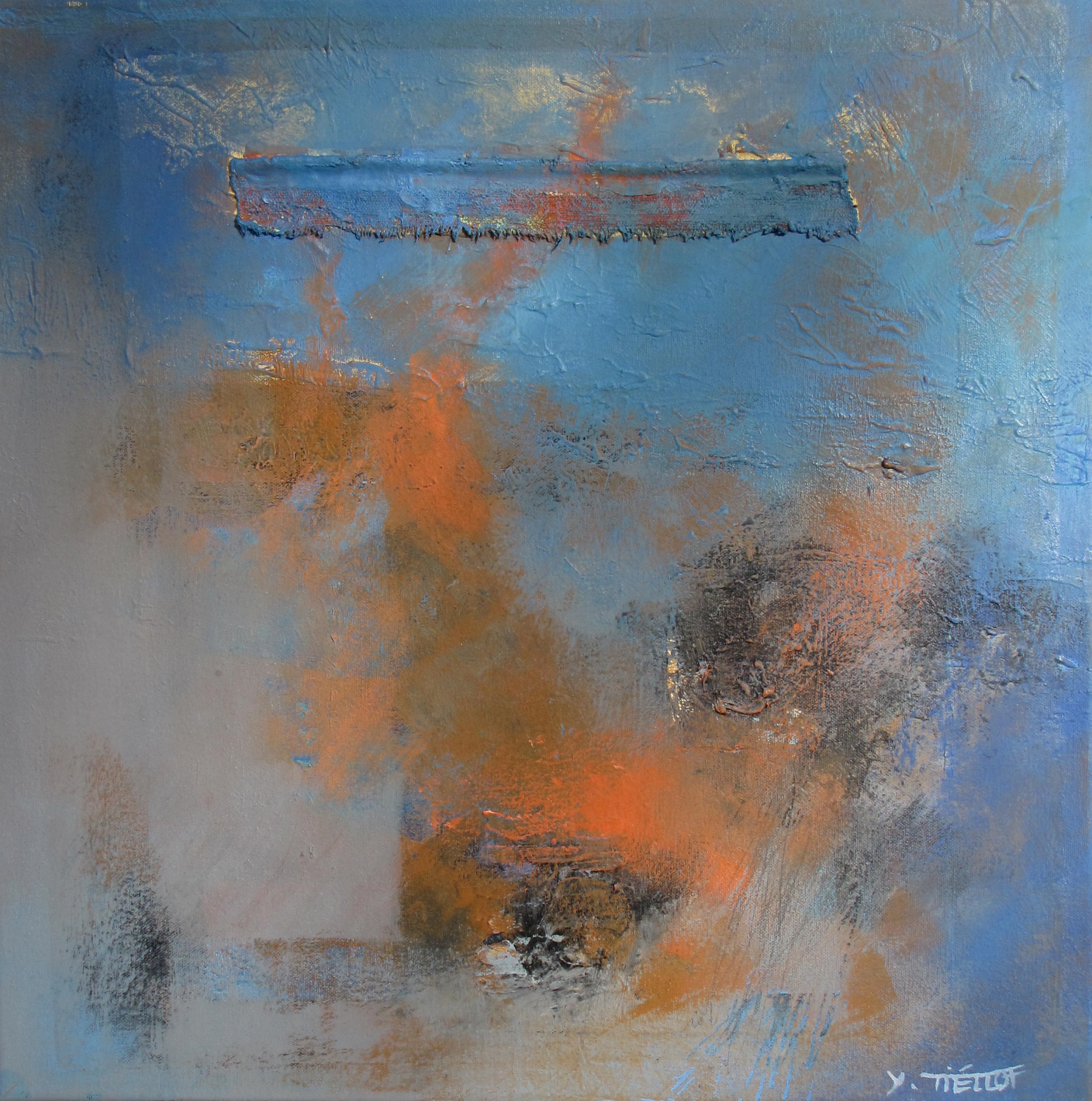 Technique mixte, huile et tissu encollé