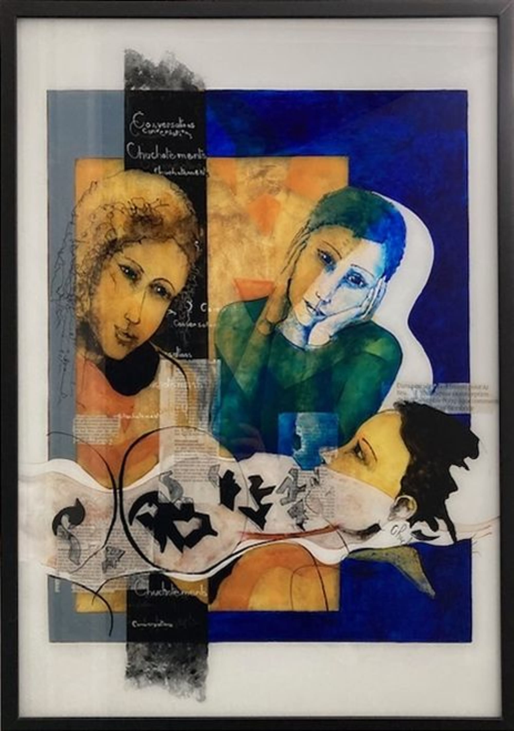Peinture au revers du verre, Acrylique, encre de Chine, collage.
