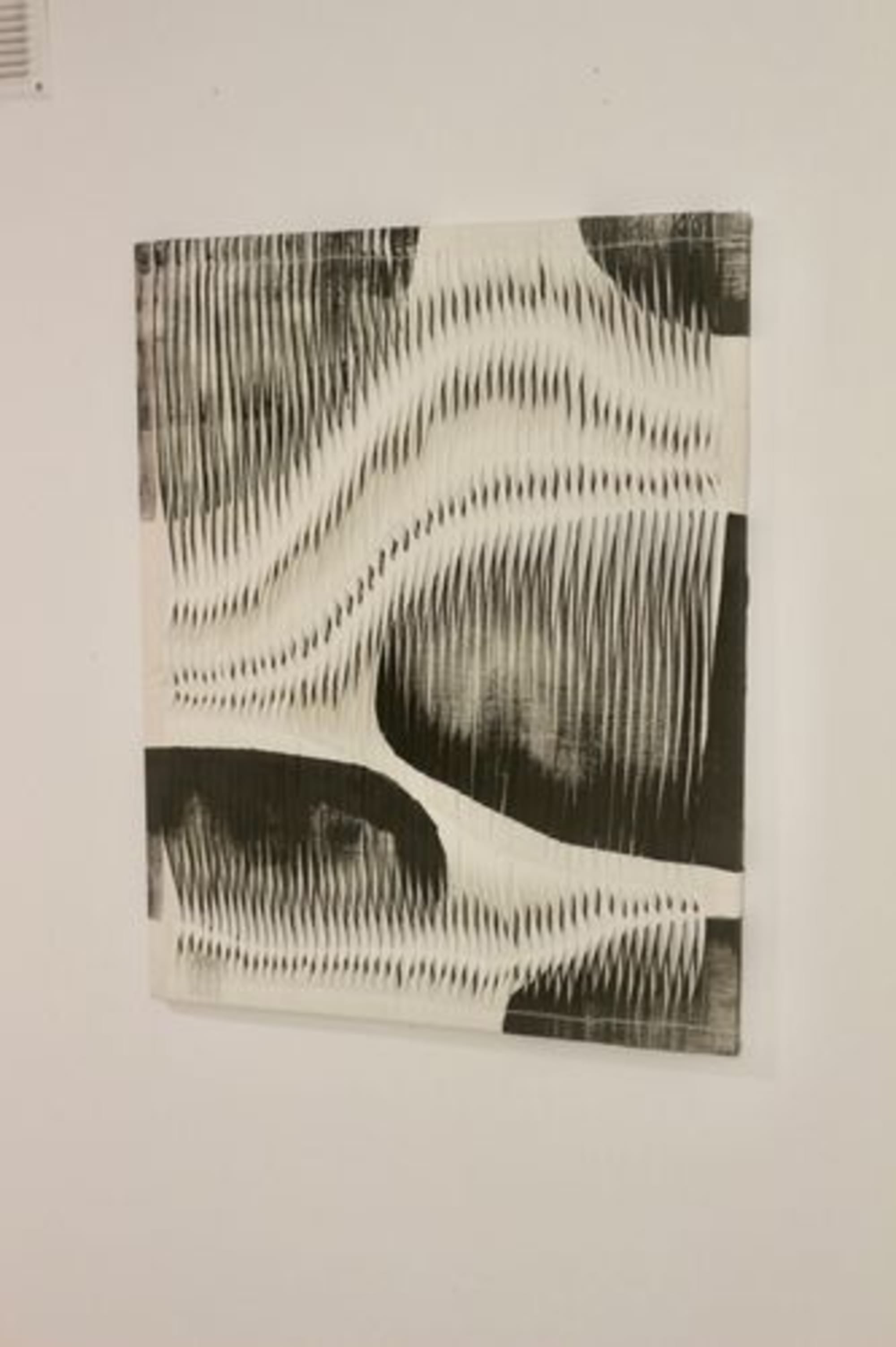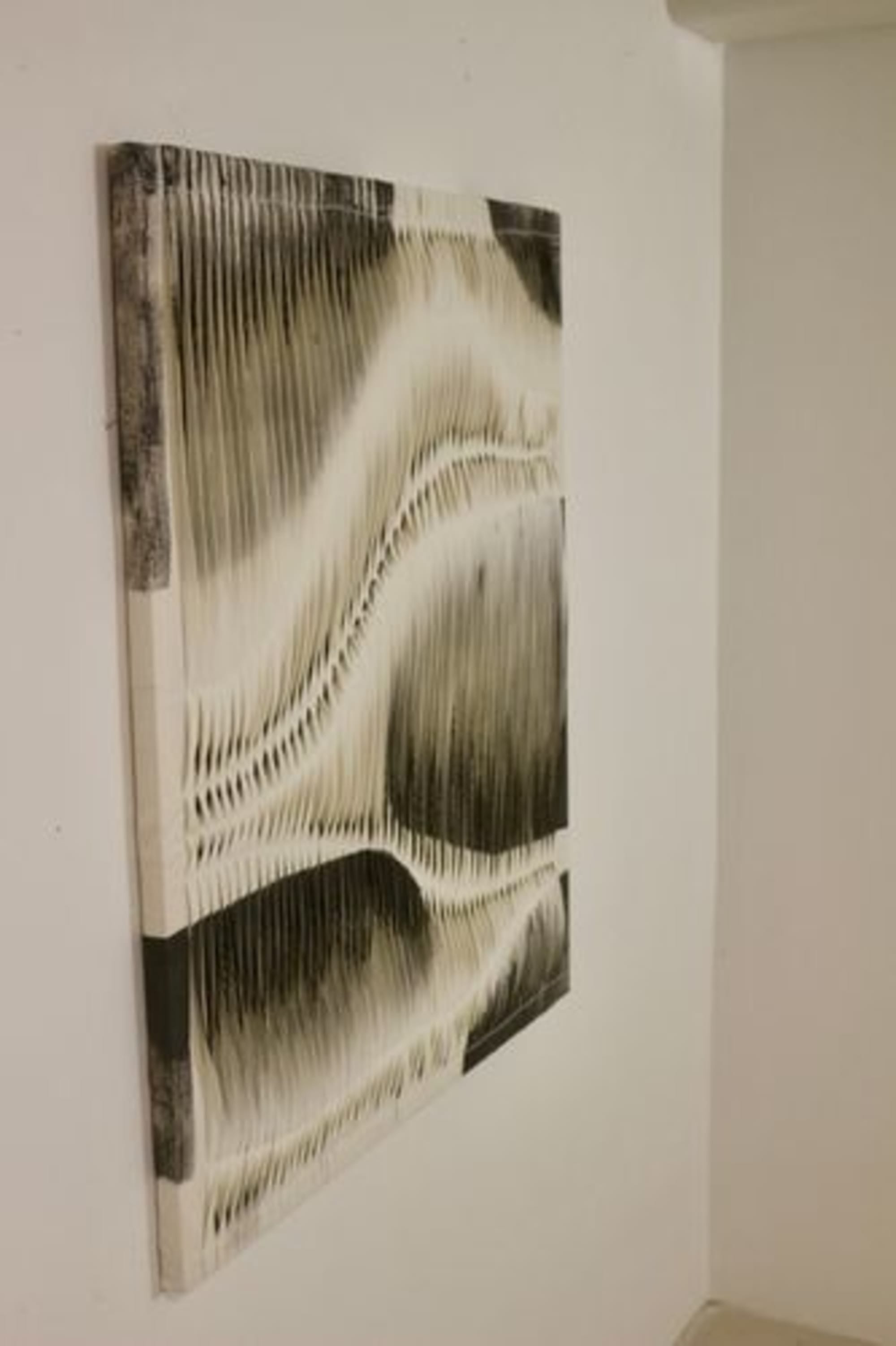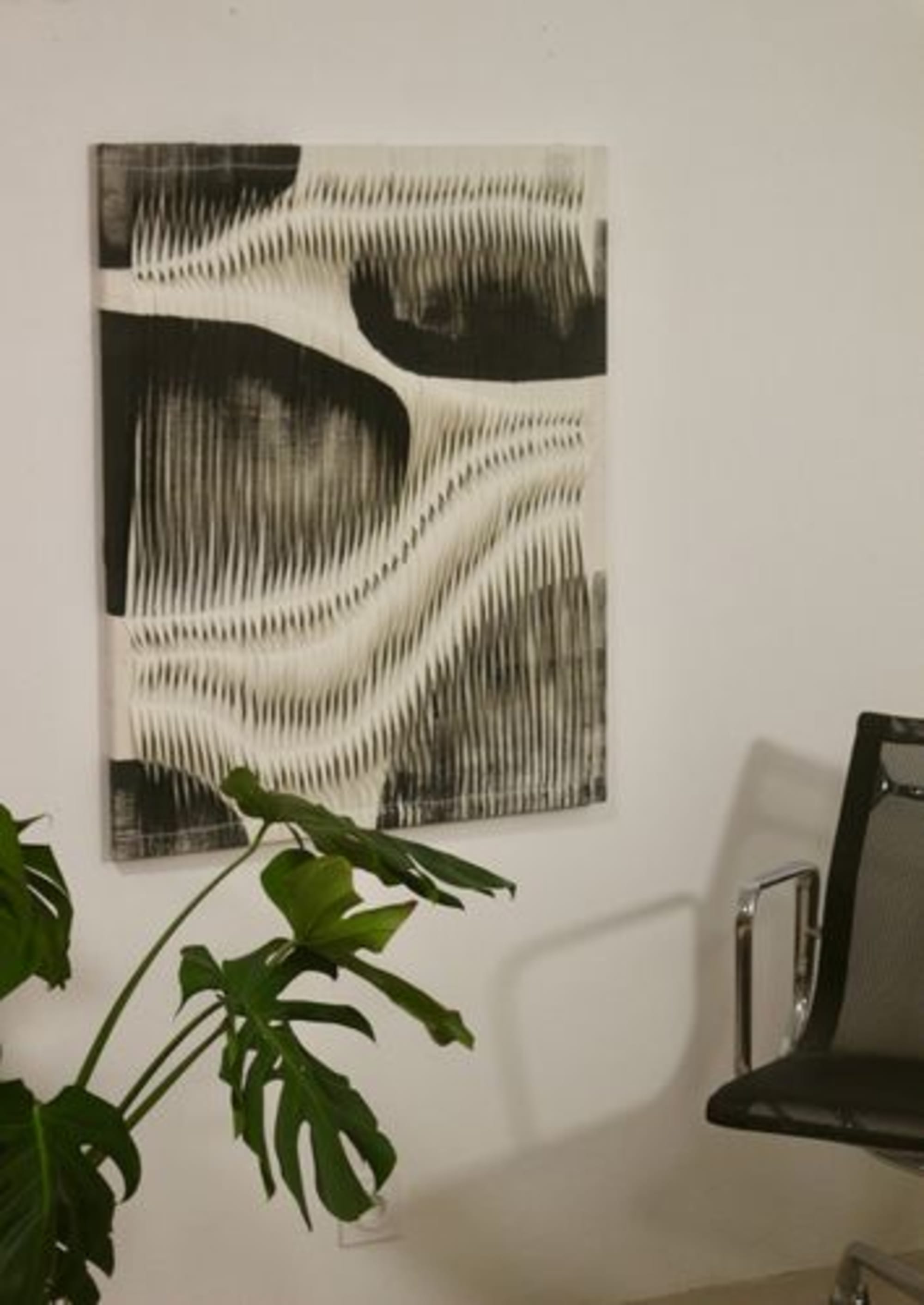 Tableau texturé effet de vague par plissage coloris charbon et blanc. Contemporain. Réf Galet.