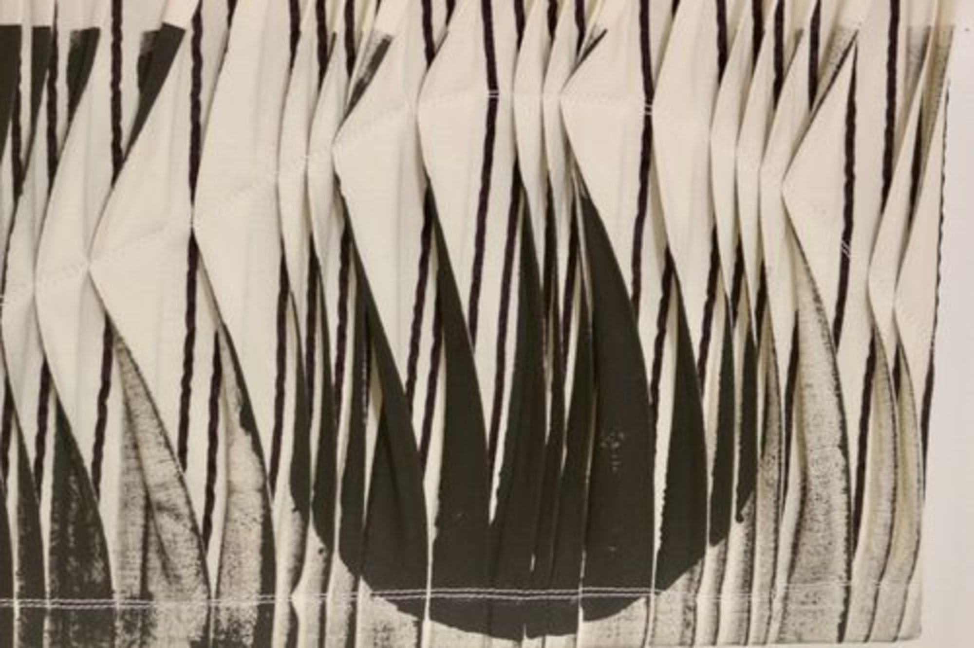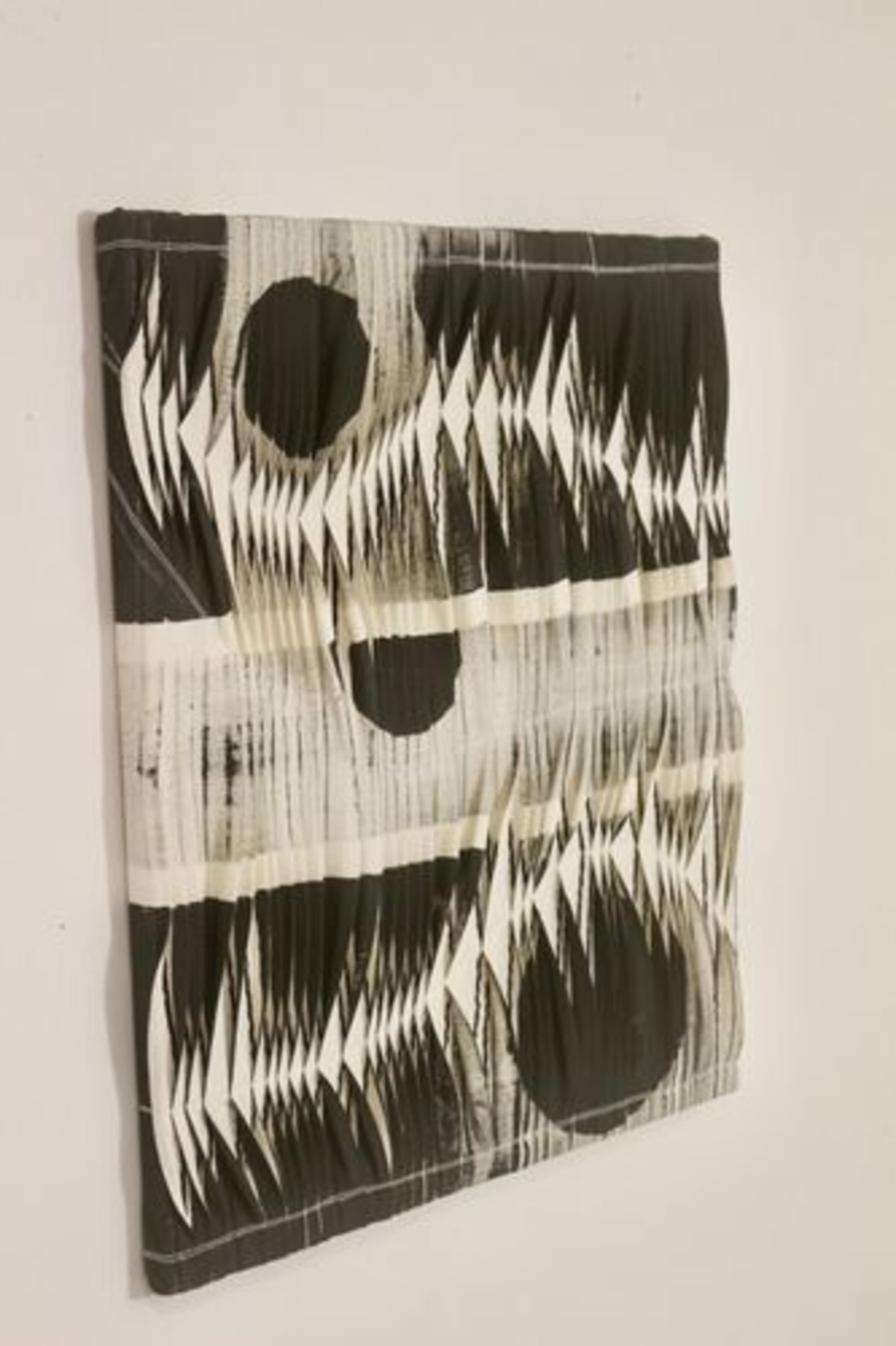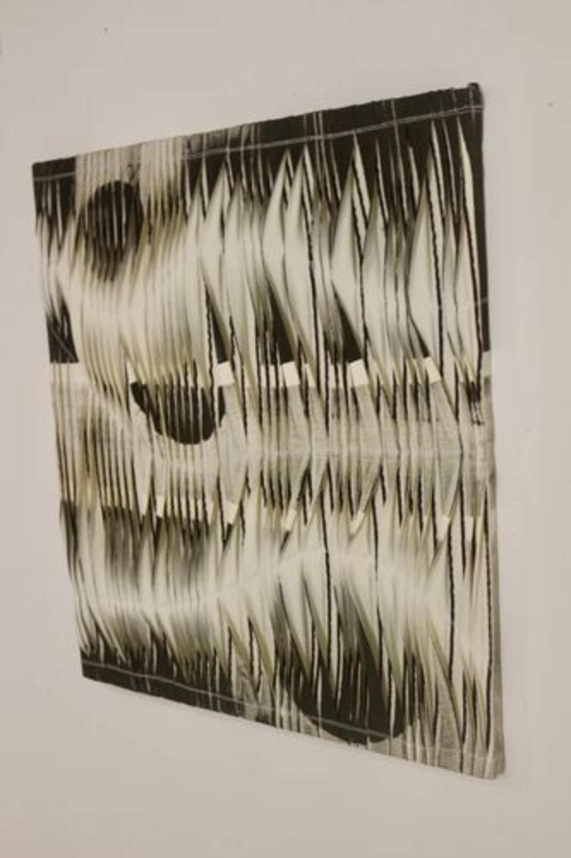 Tableau sculpture textiles effet de vague et de relief par plissage coloris charbon et Contemporain. Réf astre.