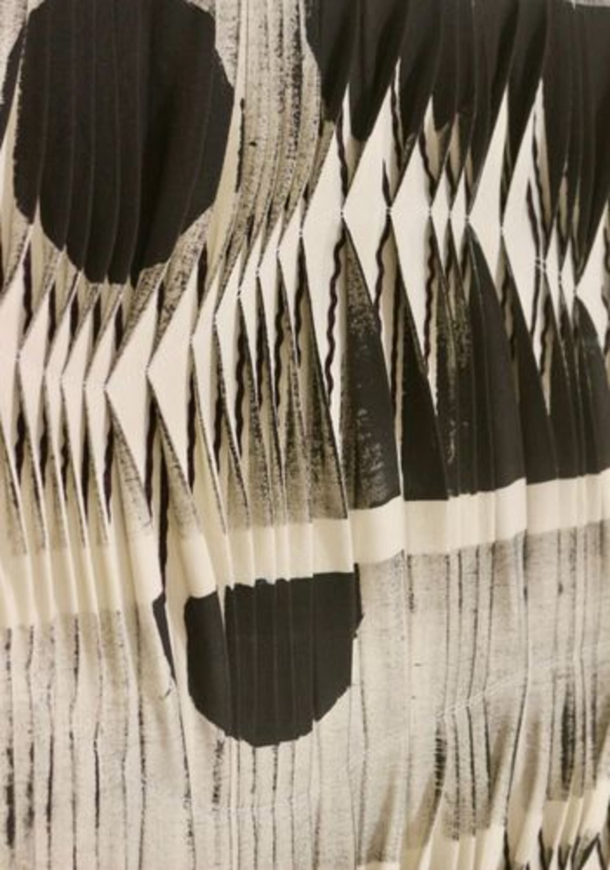 Tableaux peint et à partir d’un pliage à répétition et de façon aléatoire aux rythmes des lignes horizontales des images se forment pour donner des ambiances abstraites.