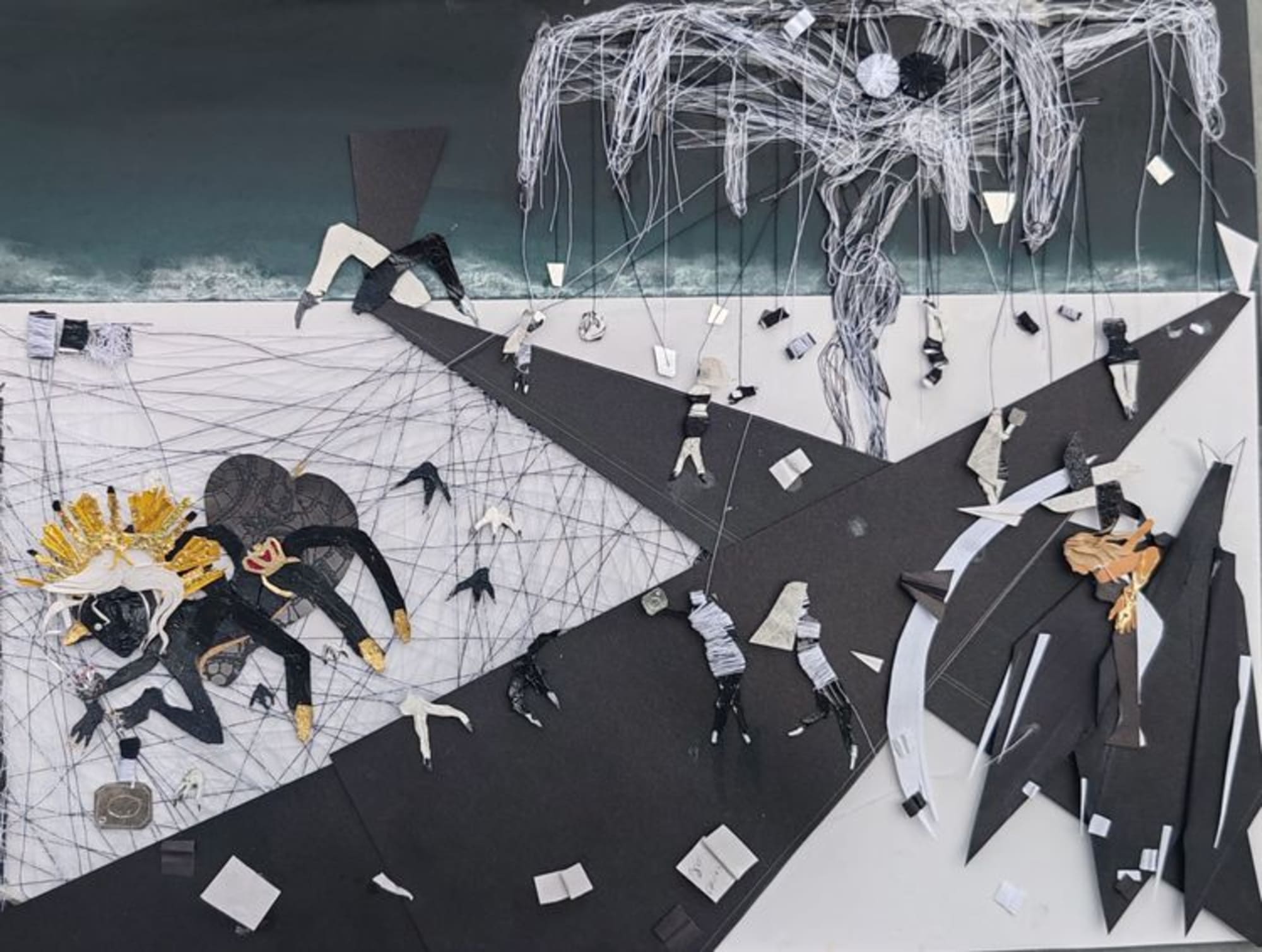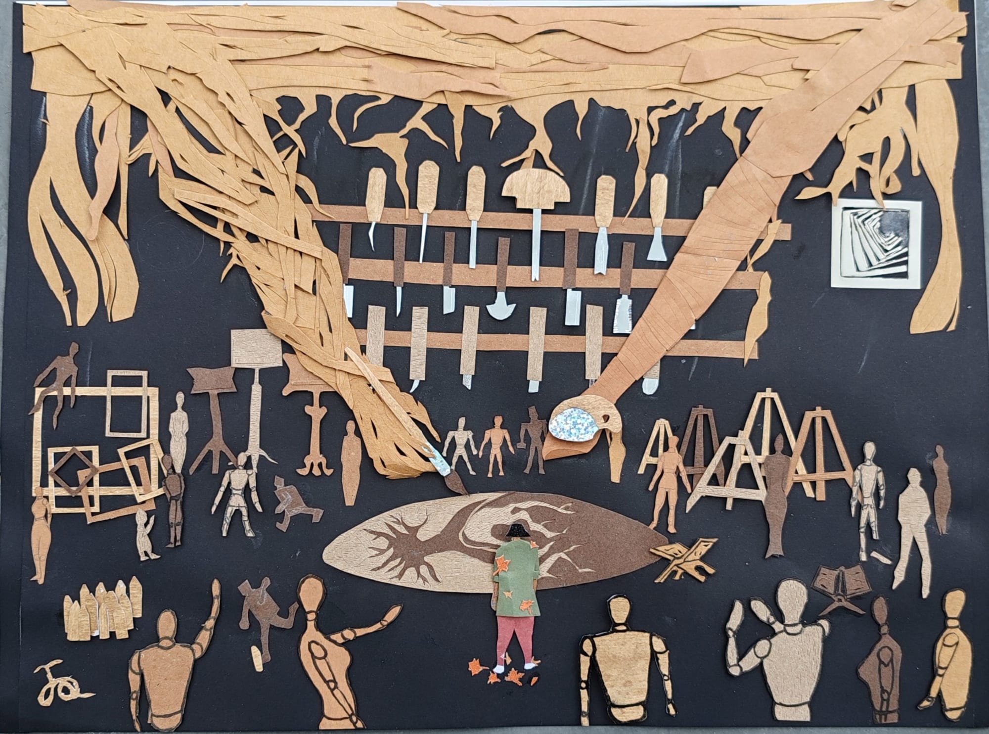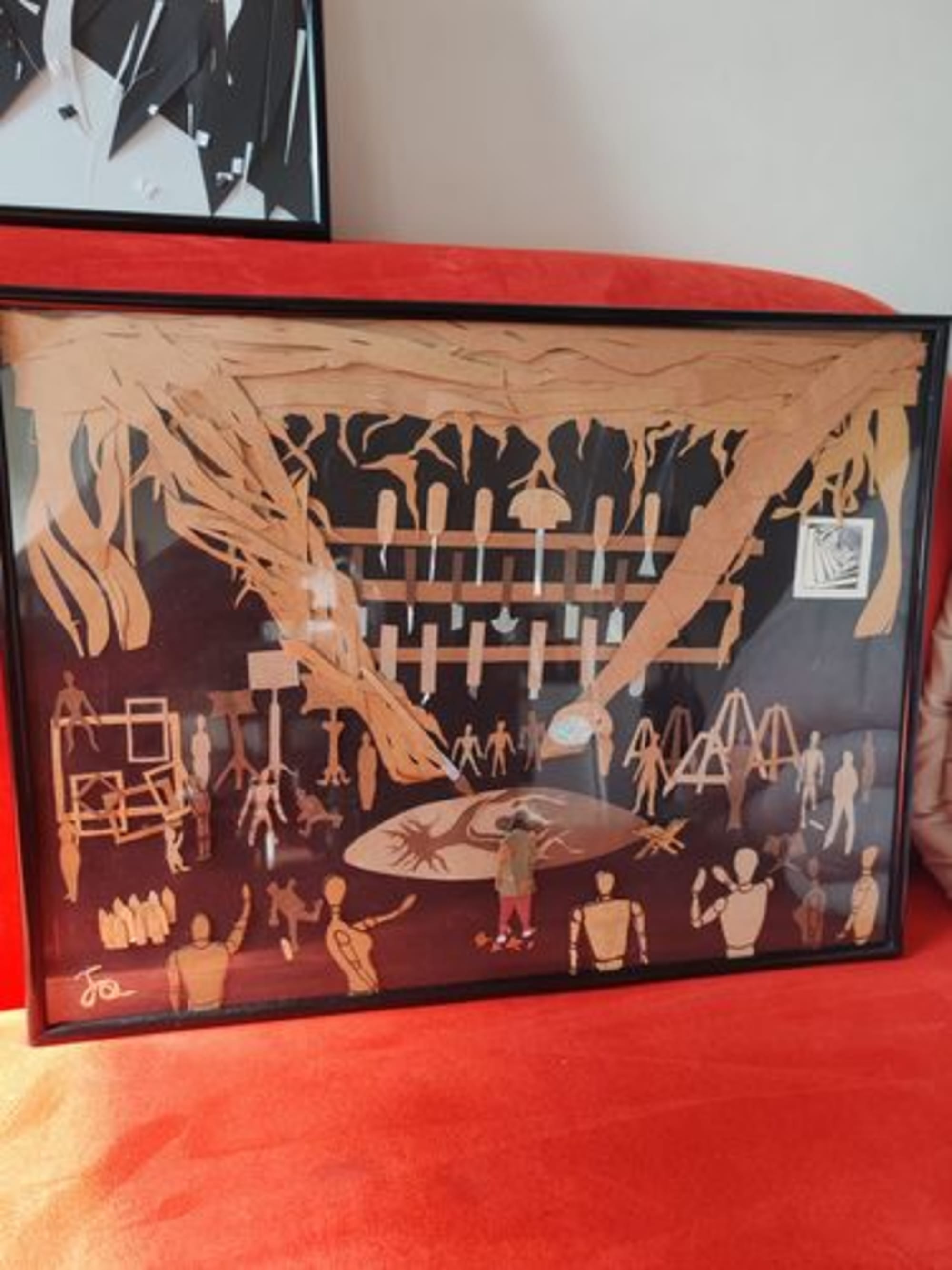 Travail de fourmi pour réaliser cette œuvre qui est sujet à interprétation (œuvre encadrée)