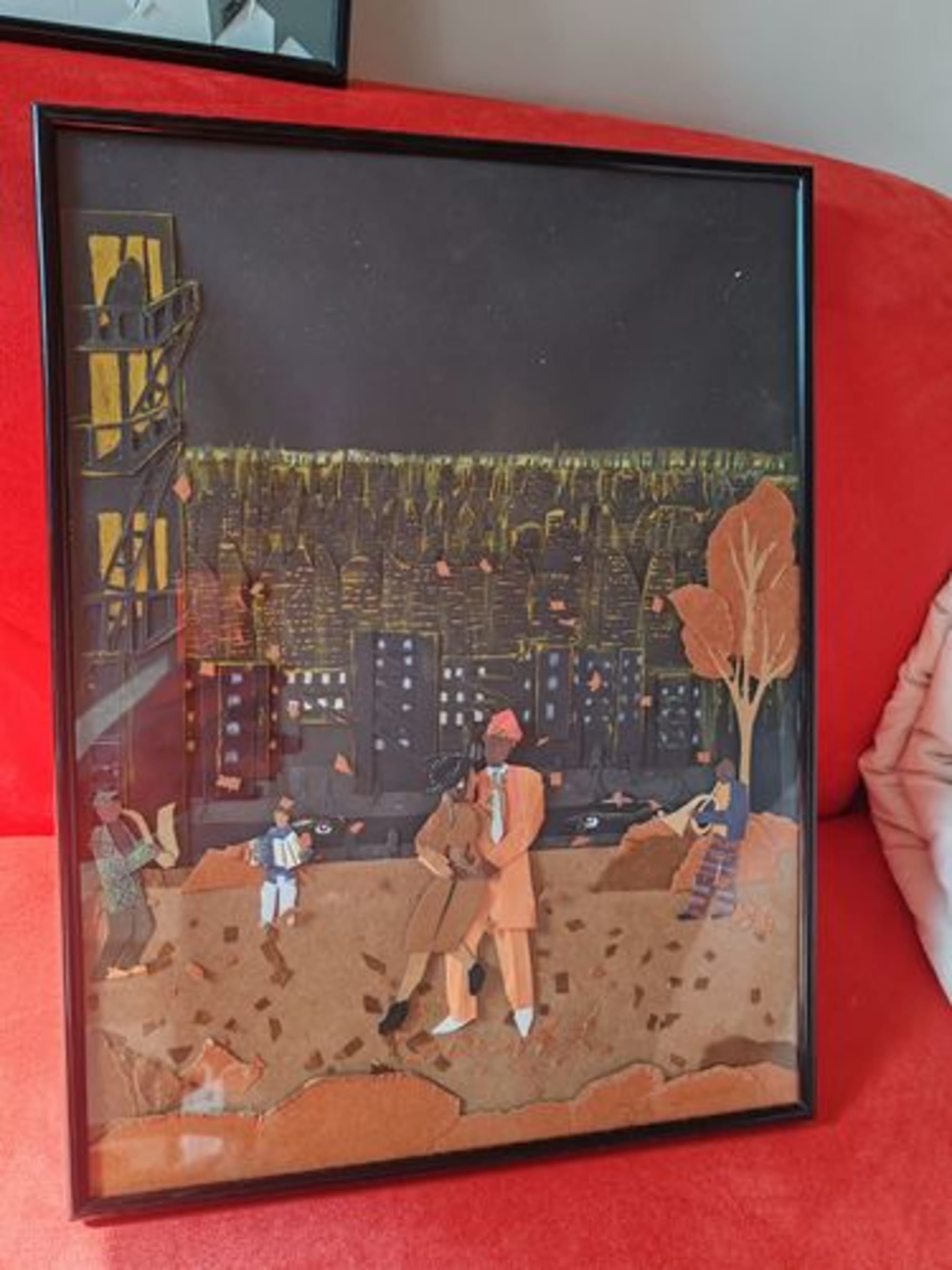 Tableau 30 x 40cm collage pastel soft aquarelle perlée