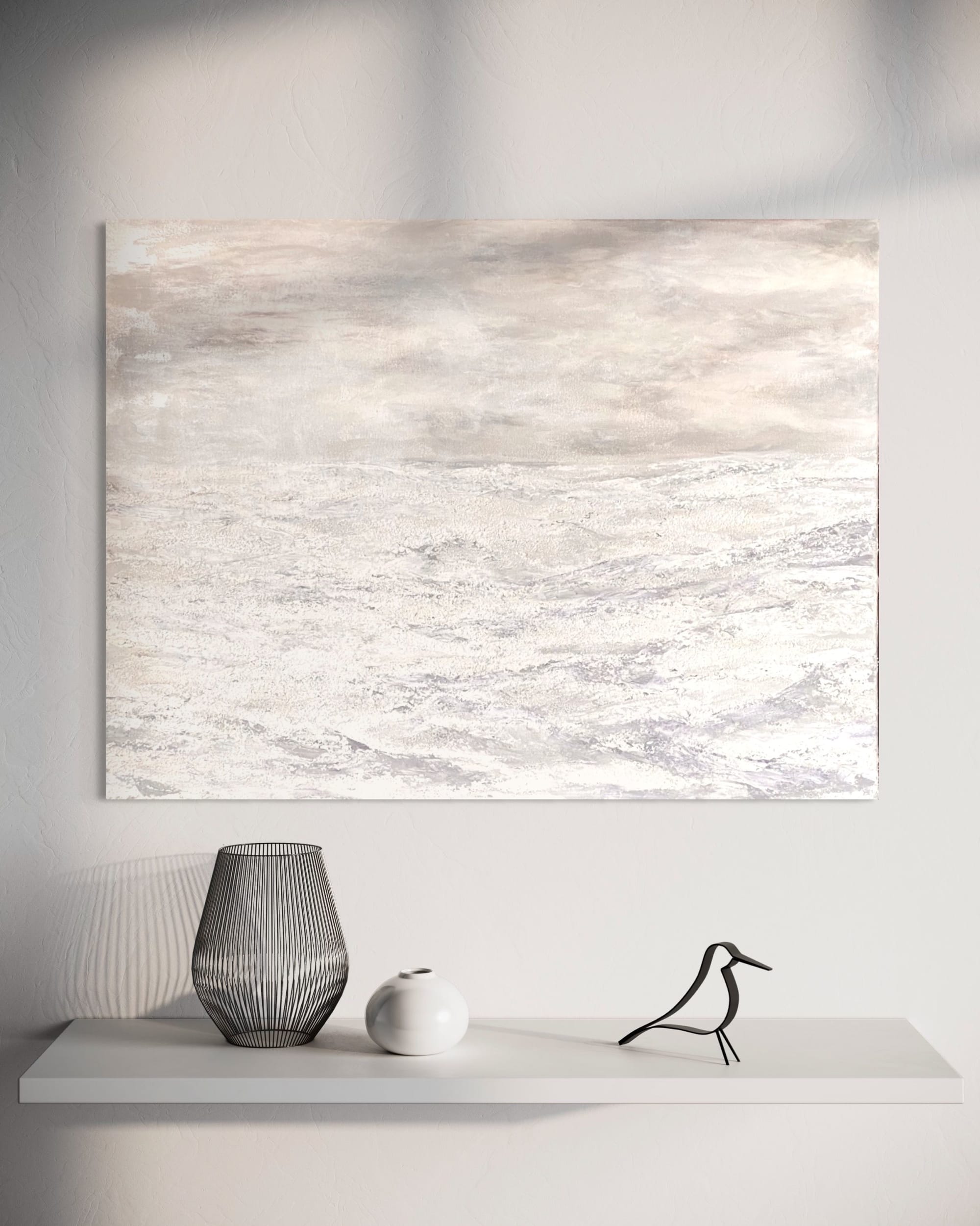 In the hush of a winter’s day, a serene moment prevails, as if the world is holding its breath before the storm. Shades of white and soft grays paint a canvas of tranquility.