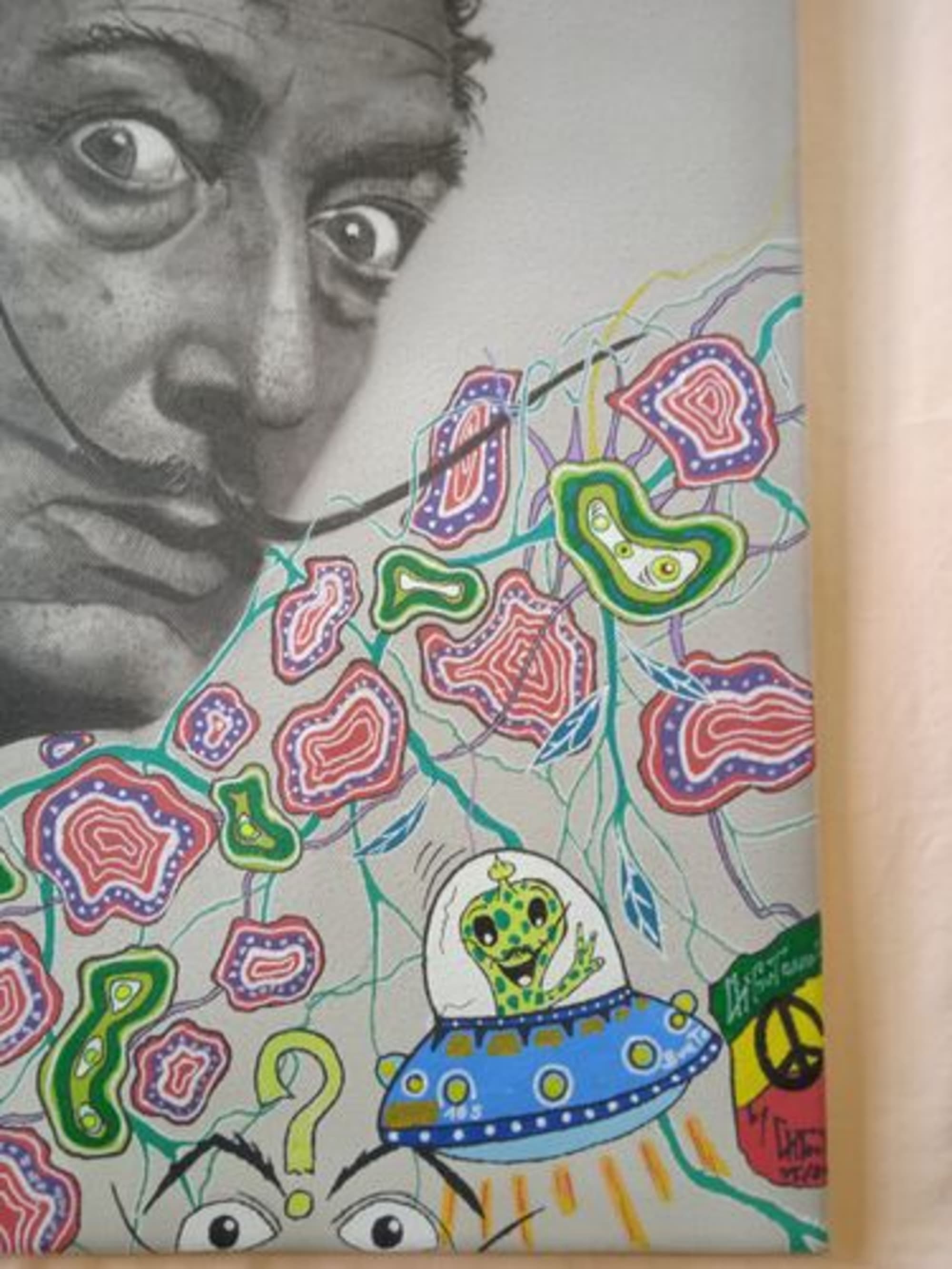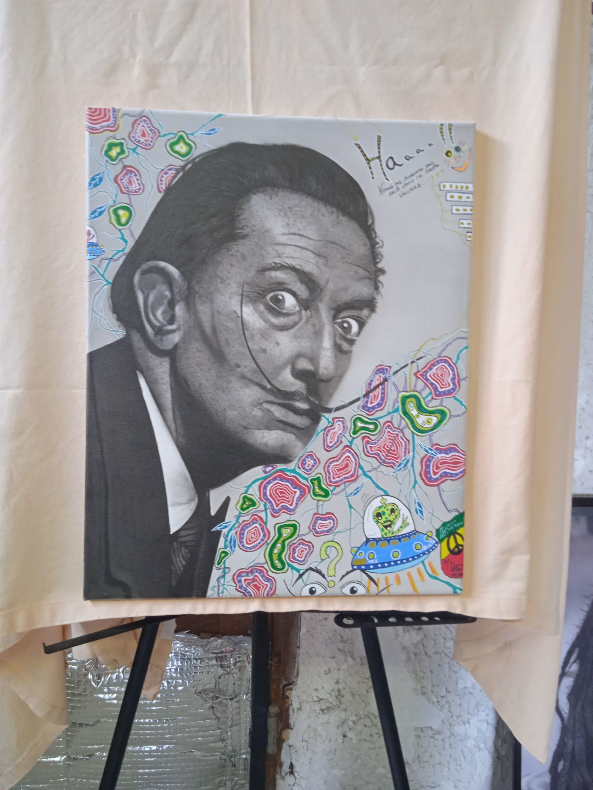 Réalisation du portrait de Salvador Dali en noir et blanc,ainsi qu’aux posca