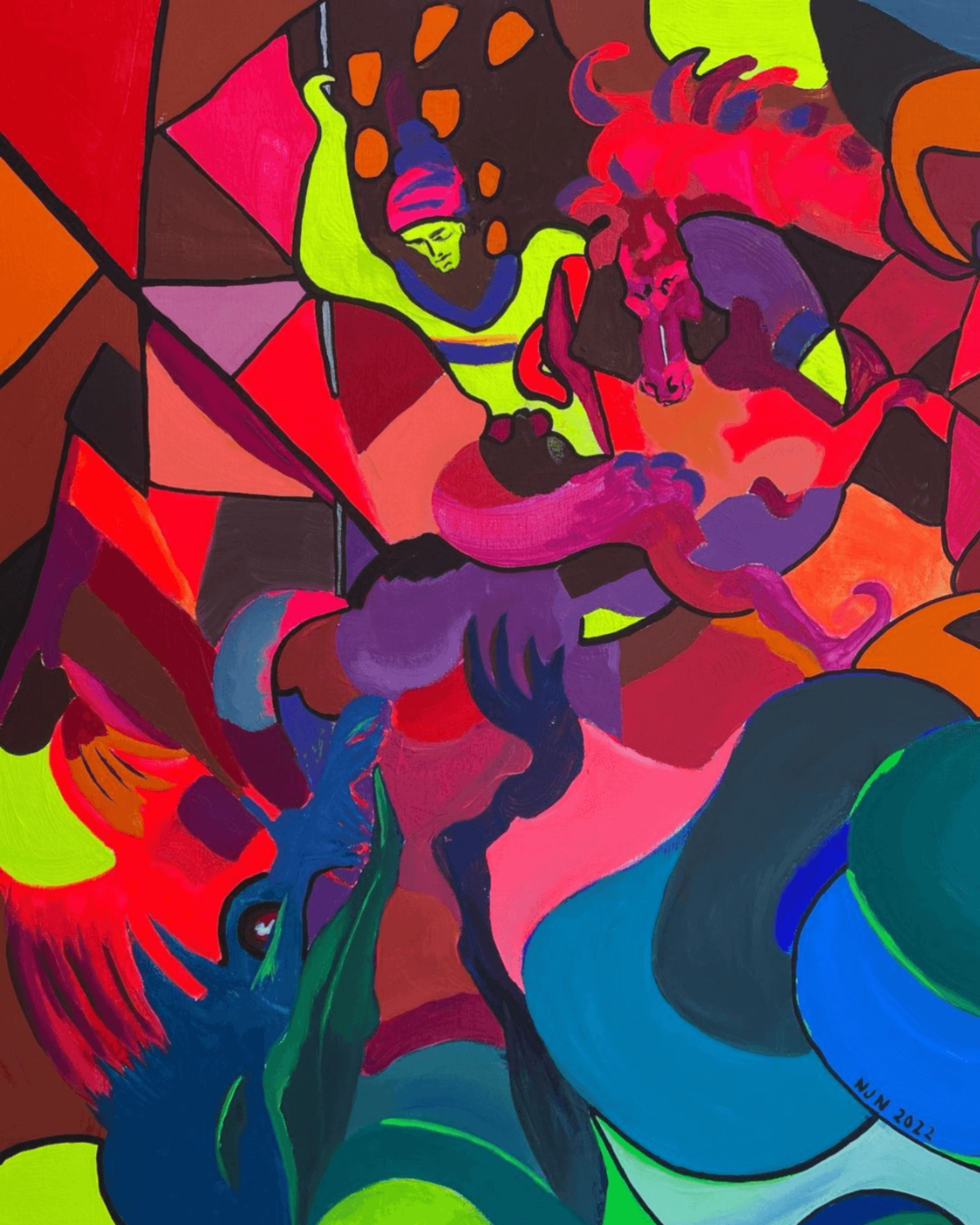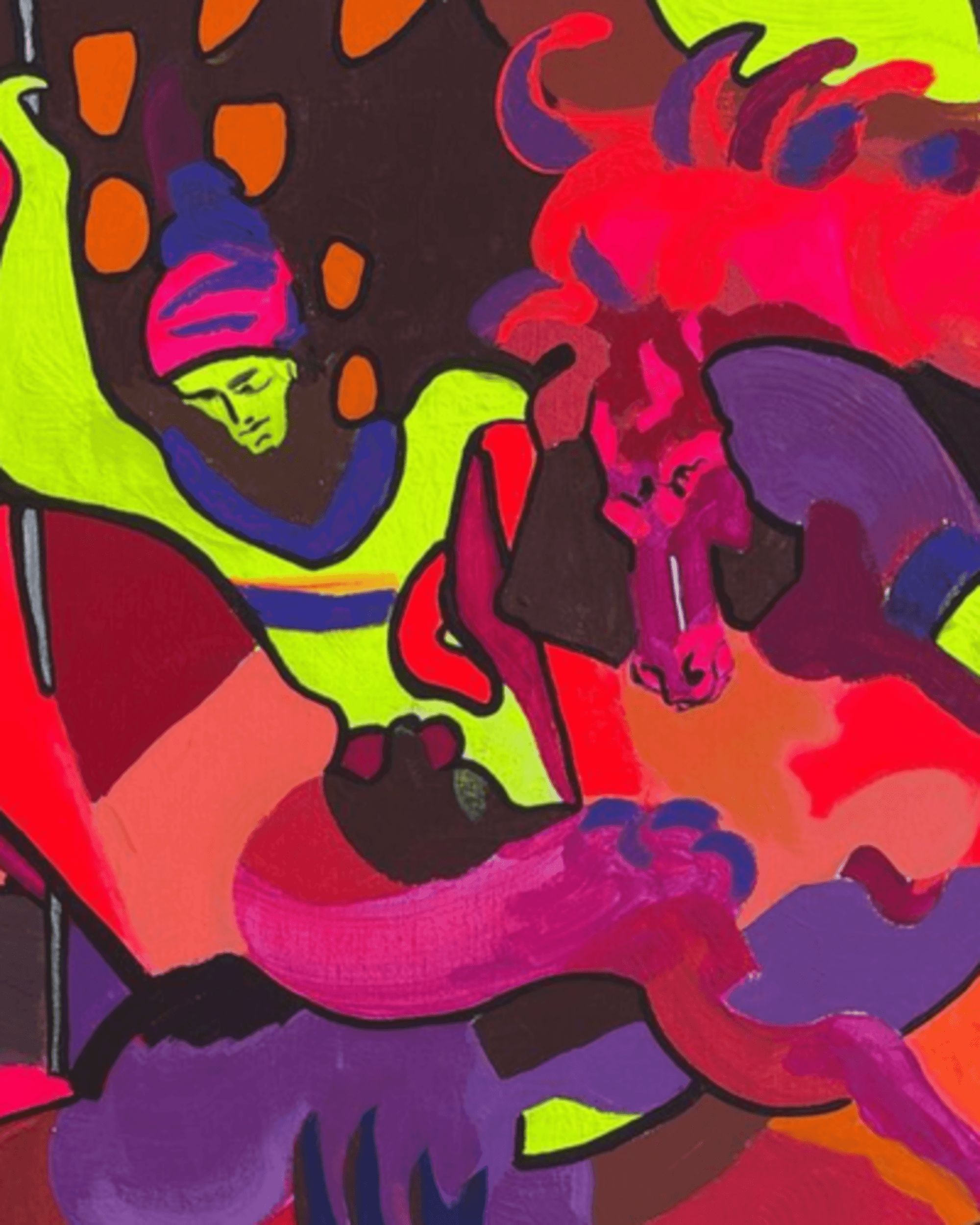 The fluorescent yellow is always important in my paintings.