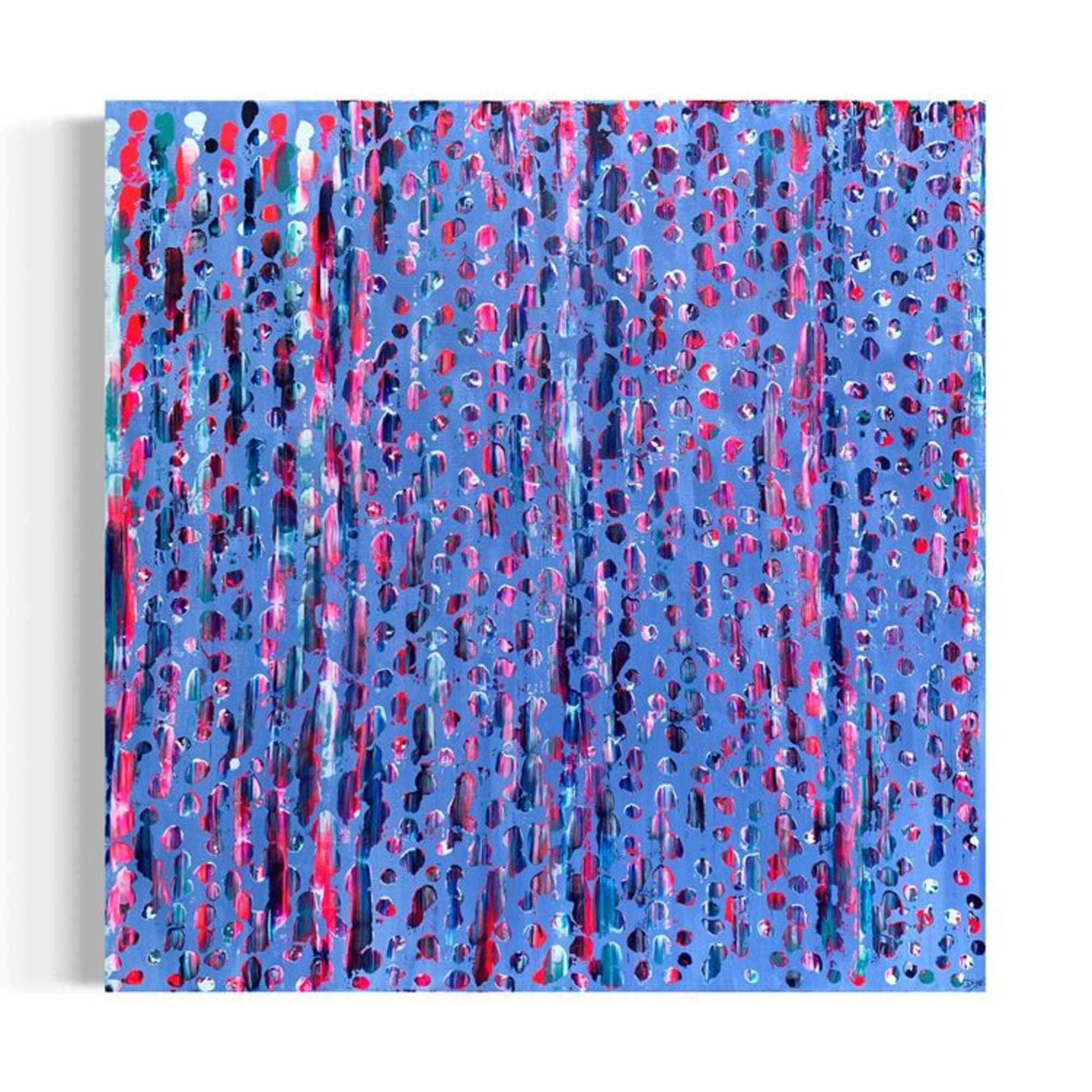 Voici ma toile “Les bulles” réalisée à la spatule et au pinceau dans le tons bleu, rose et blanc!