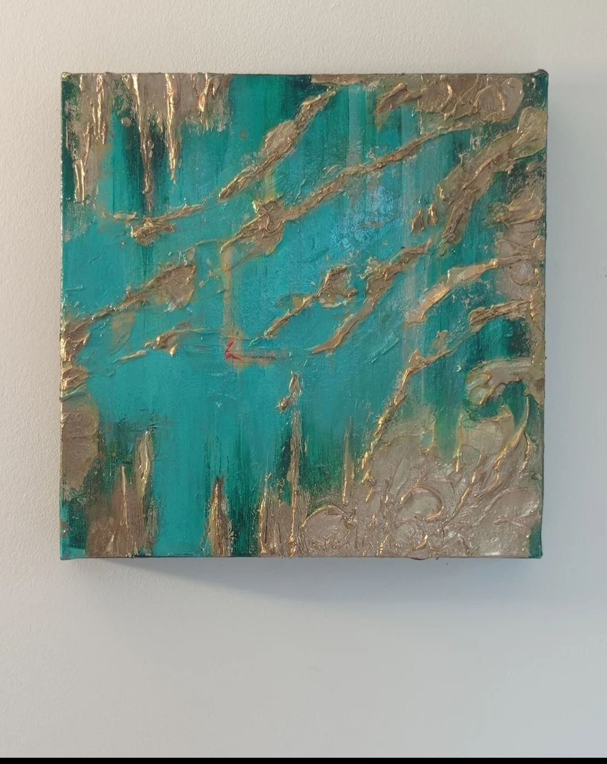 Format 3D tableau bleu vert et relief en feuillesd’or