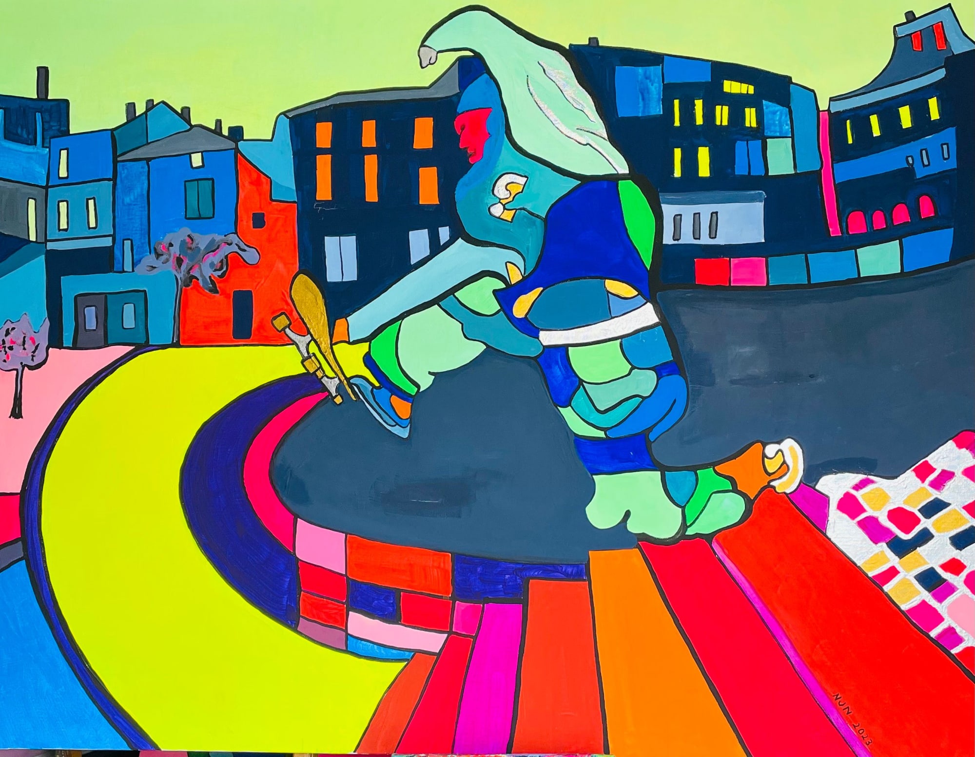 🖌️ Oeuvre : « Skateboarding in the City », peinture acrylique, 116x89 cm, 2023