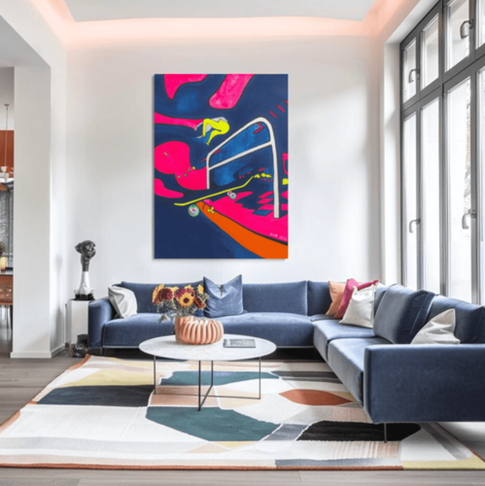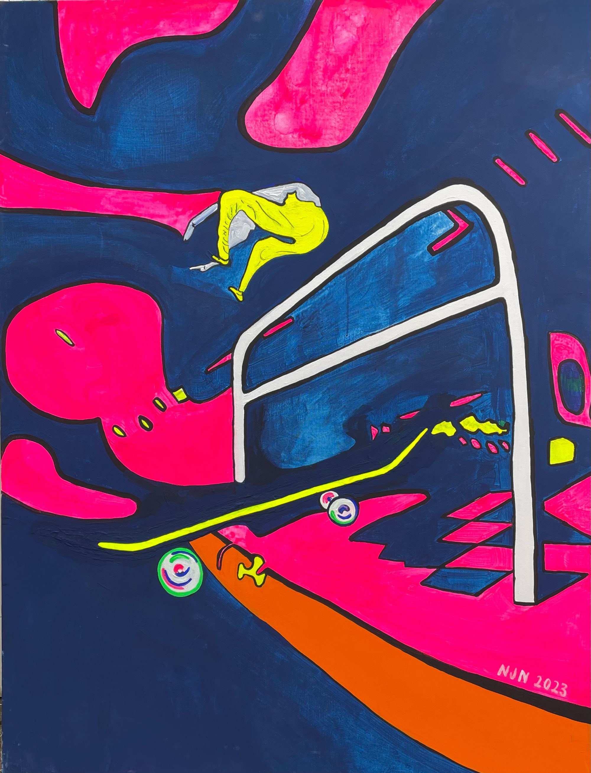 🖌️ Œuvre : « Skate la nuit à Paris », peinture acrylique, 116x89cm, 2023