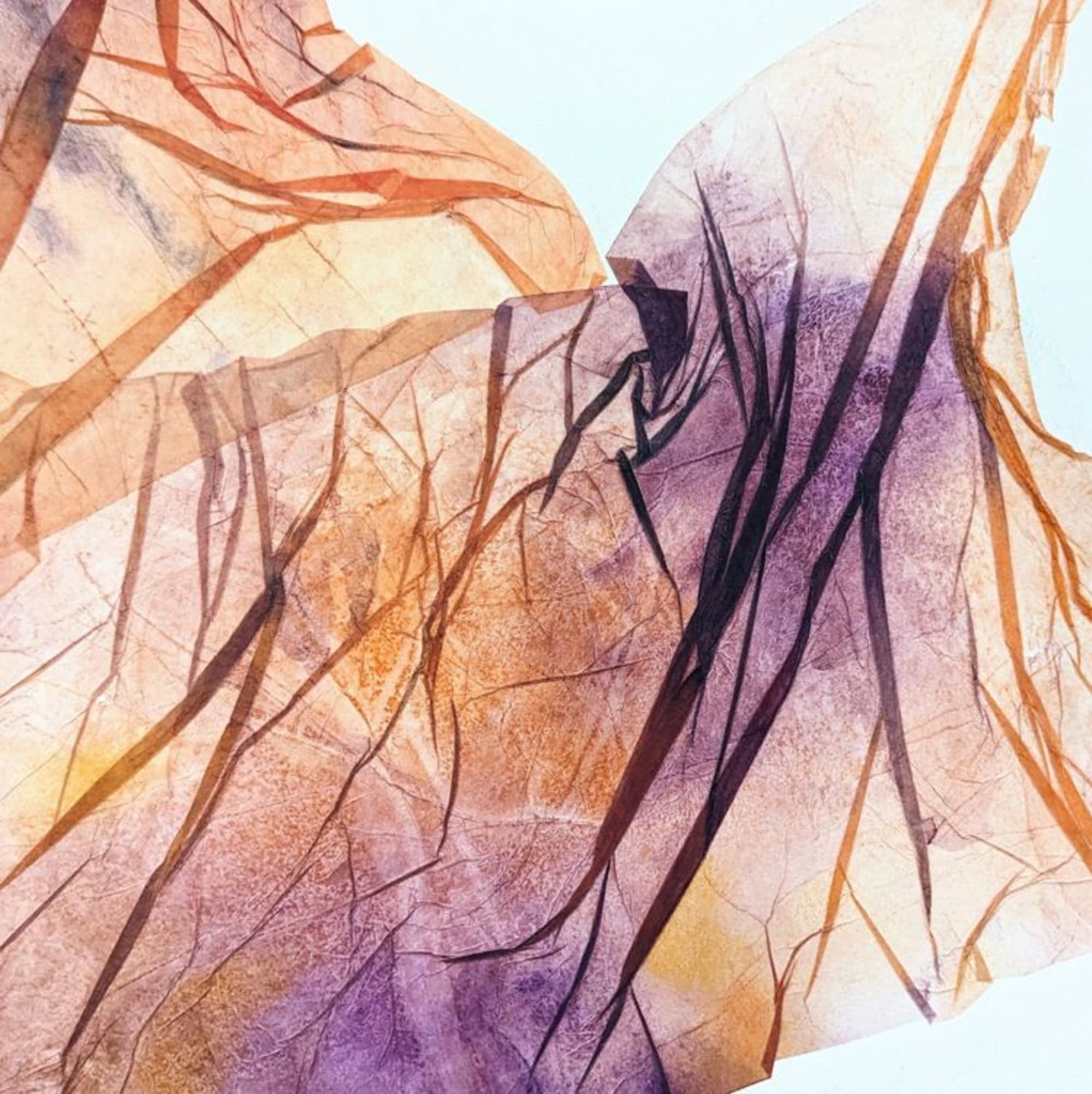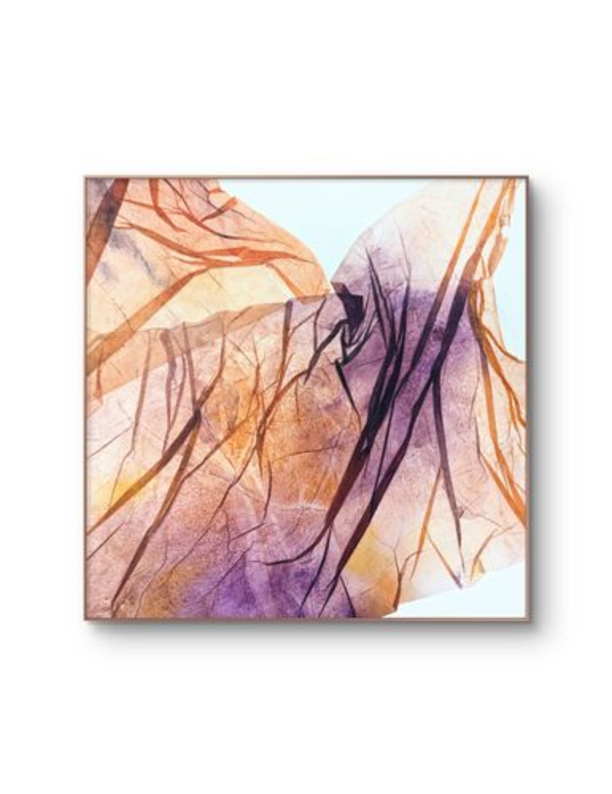 Cette œuvre étude de la mini collection “Fragments” joue sur des nuances de violet et d’orange, créant un effet de mouvement et de superposition qui rappelle la complexité des souvenirs.