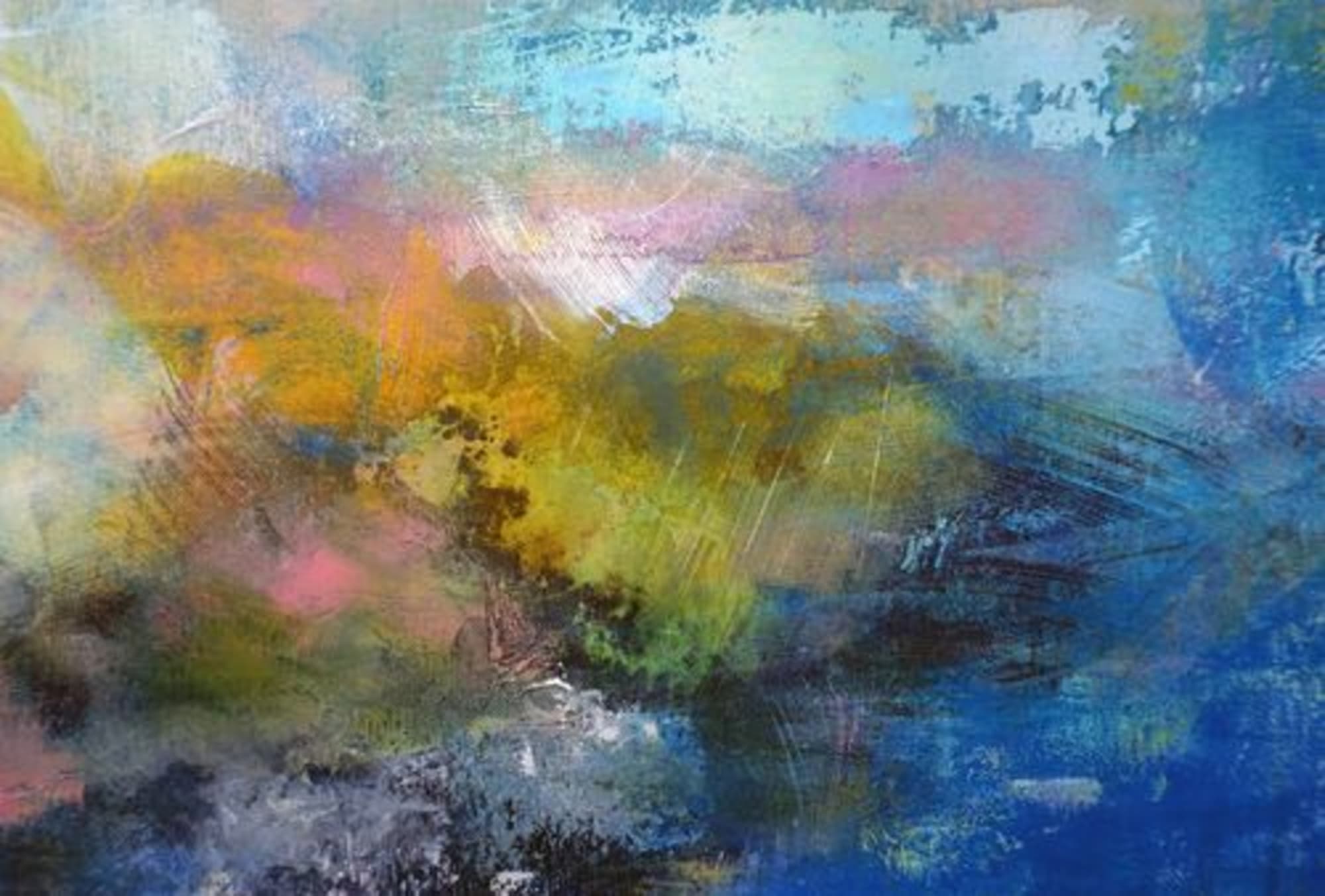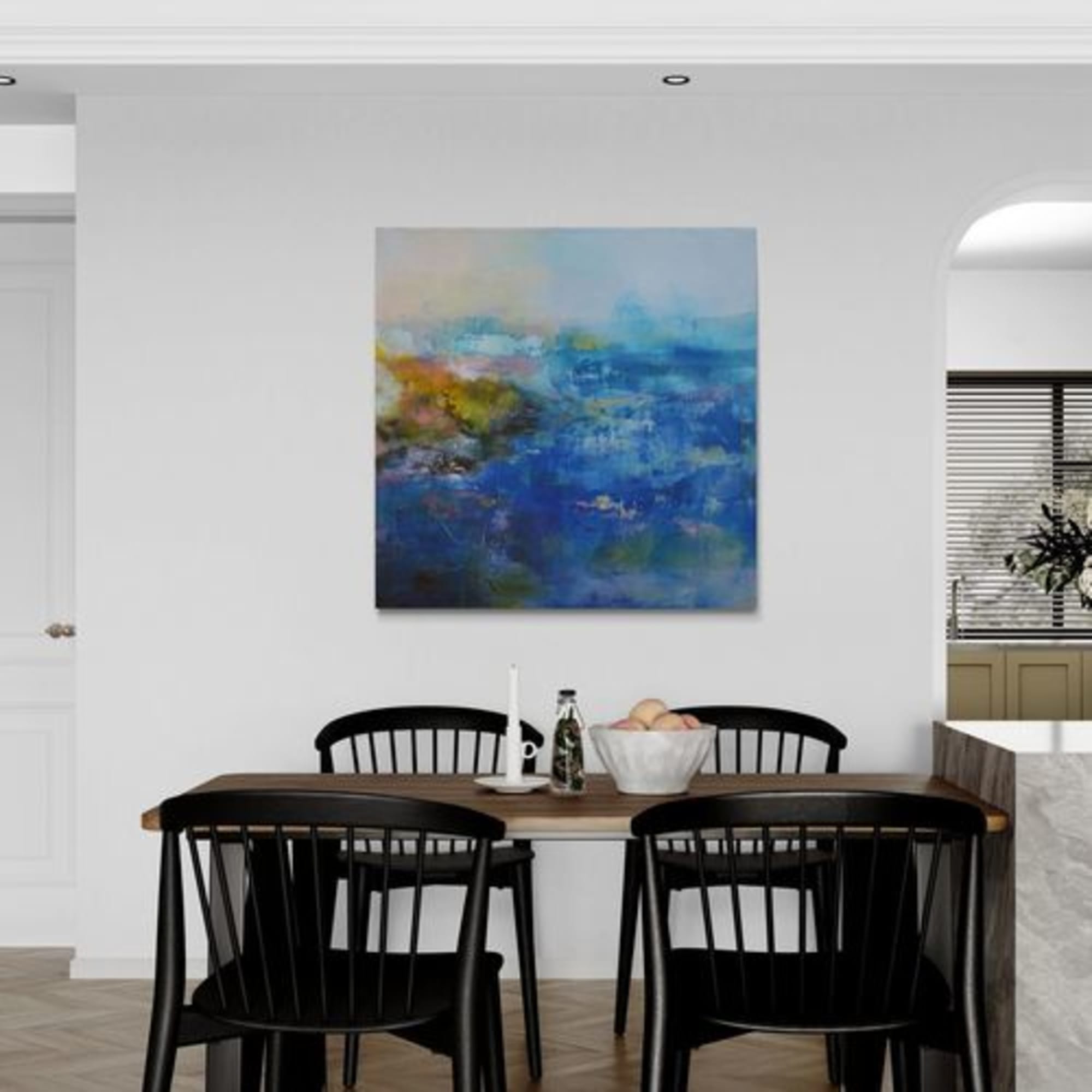 Réalisation à la peinture acrylique sur toile 80 x 80 cm, vernie mat, bords blancs.