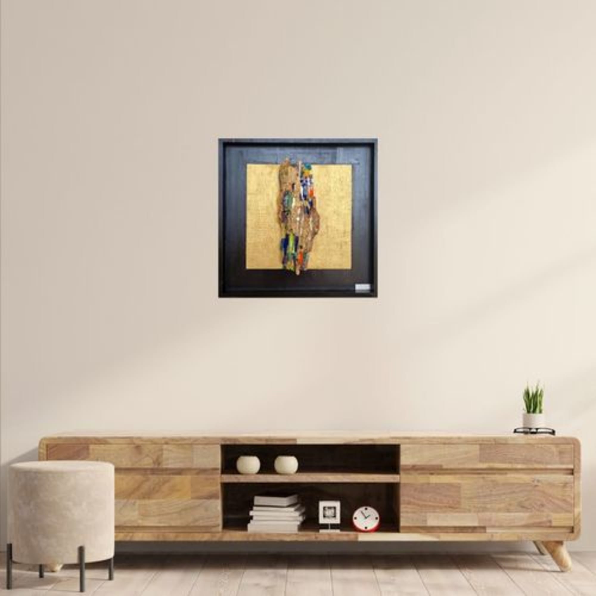 Le fond est texturé et peint en doré.