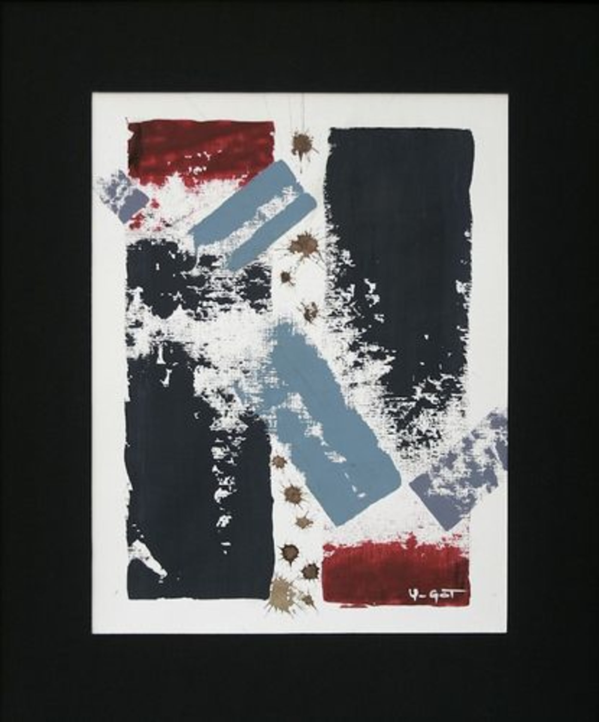 Acrylique sur papier + traces de broux de noix. Ouvrage de 33x44cm sous passe-partout de 51x61 cm (cf. photo 2). Vendu encadré (54x64cm hors tout), cf. photo 4 où il est accroché en compagnie des N°62 et 63 sur le mur d’un escalier (le 3ème à droite).