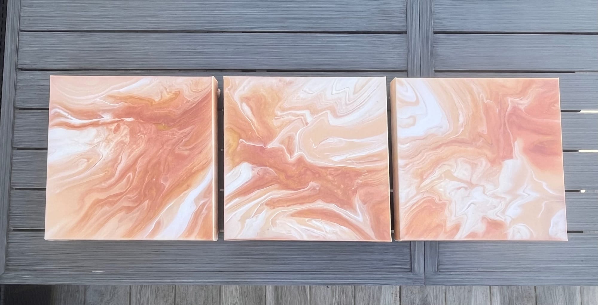 Tryptique intitulé Jupiter composée de 3 toiles de 30x30 cm.