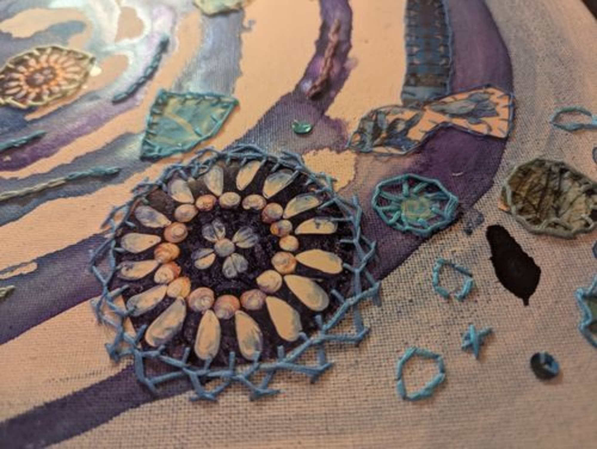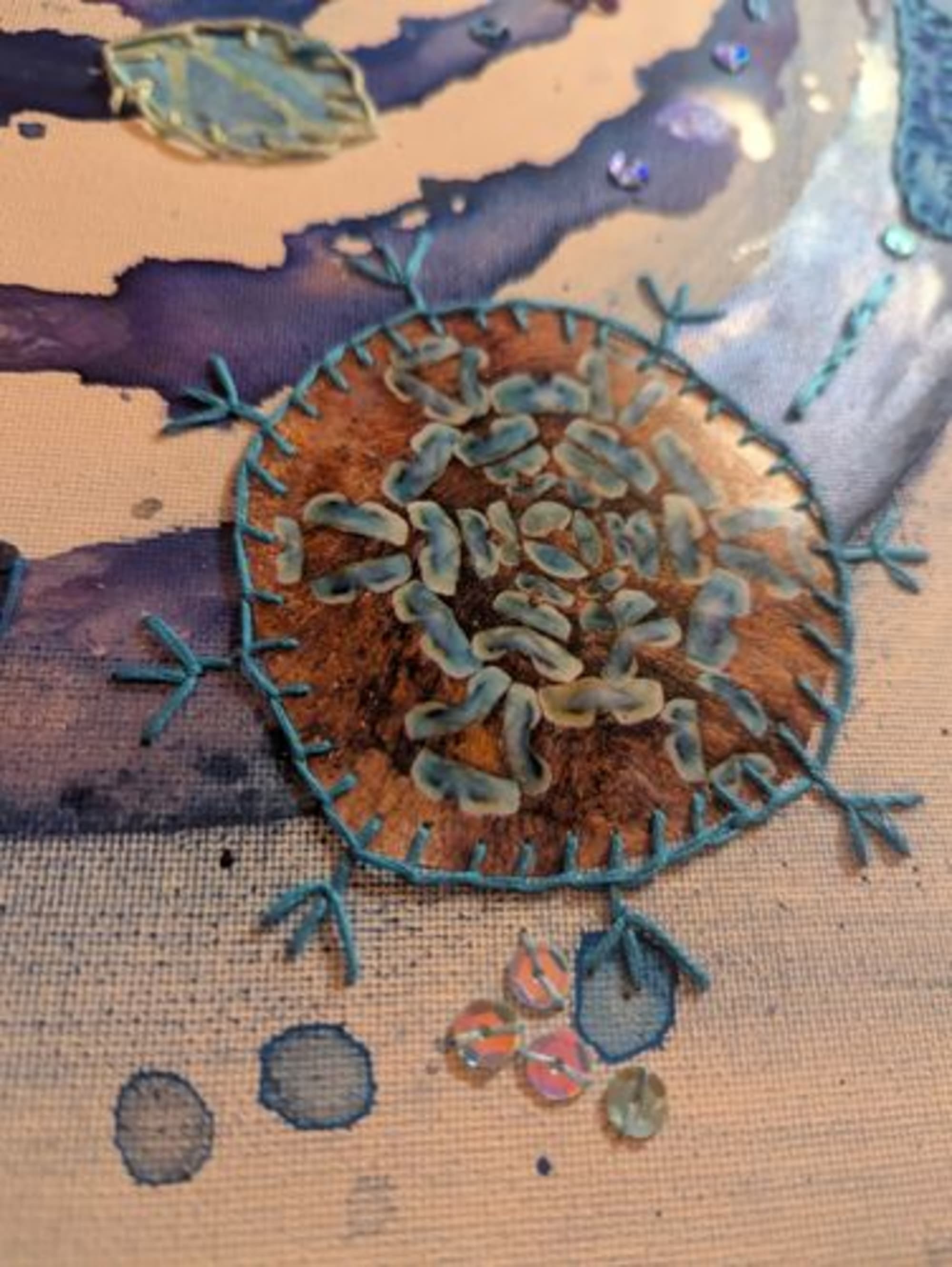 Un tourbillon de coquillages et de fleurs de tissus et de papiers pour un voyage cosmique vivifiant.