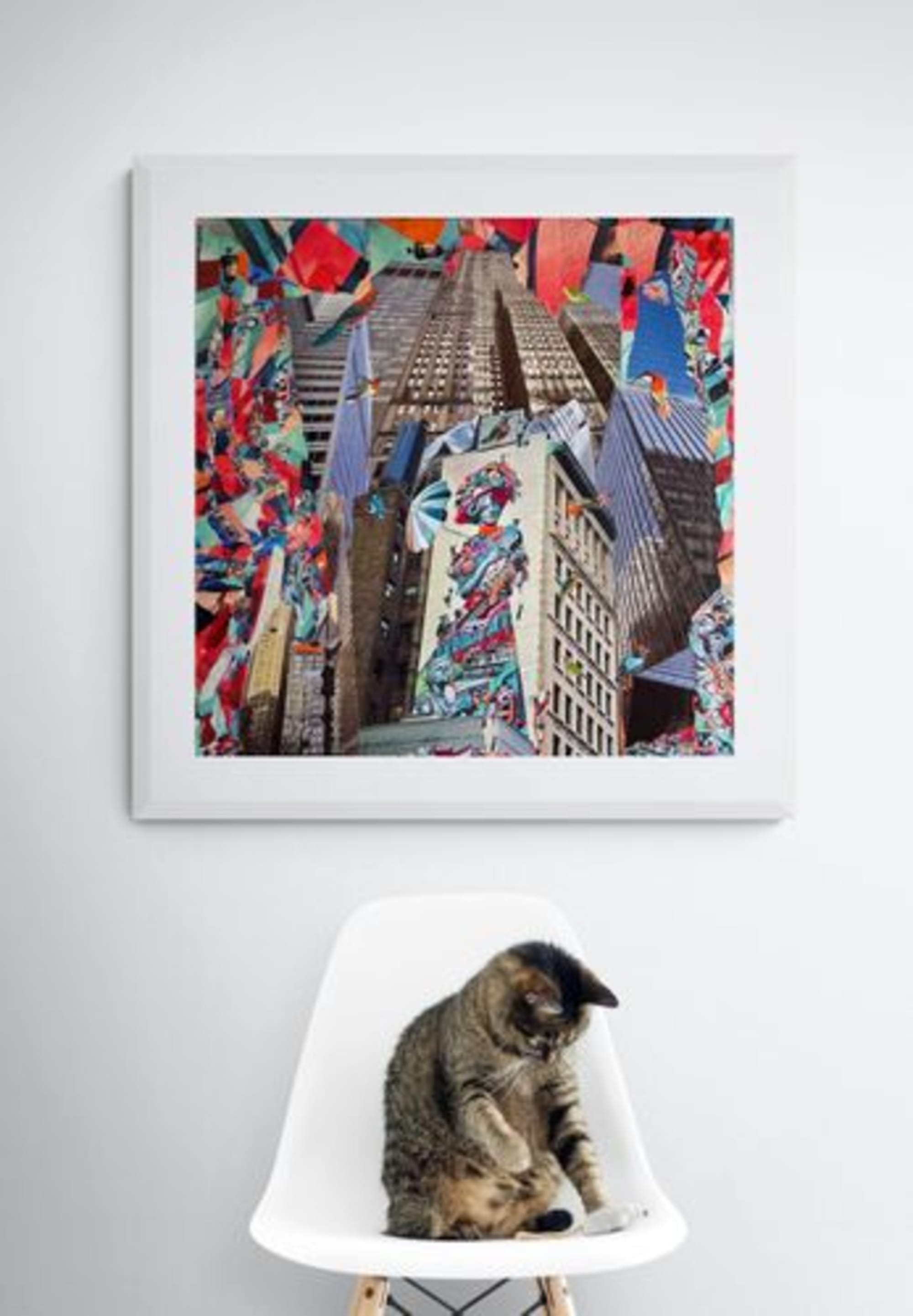 La technique utilisée est une technique mixte, combinaison de photos, papiers, et peinture acrylique ; ces différents matériaux permettant de créer des textures et des effets visuels.