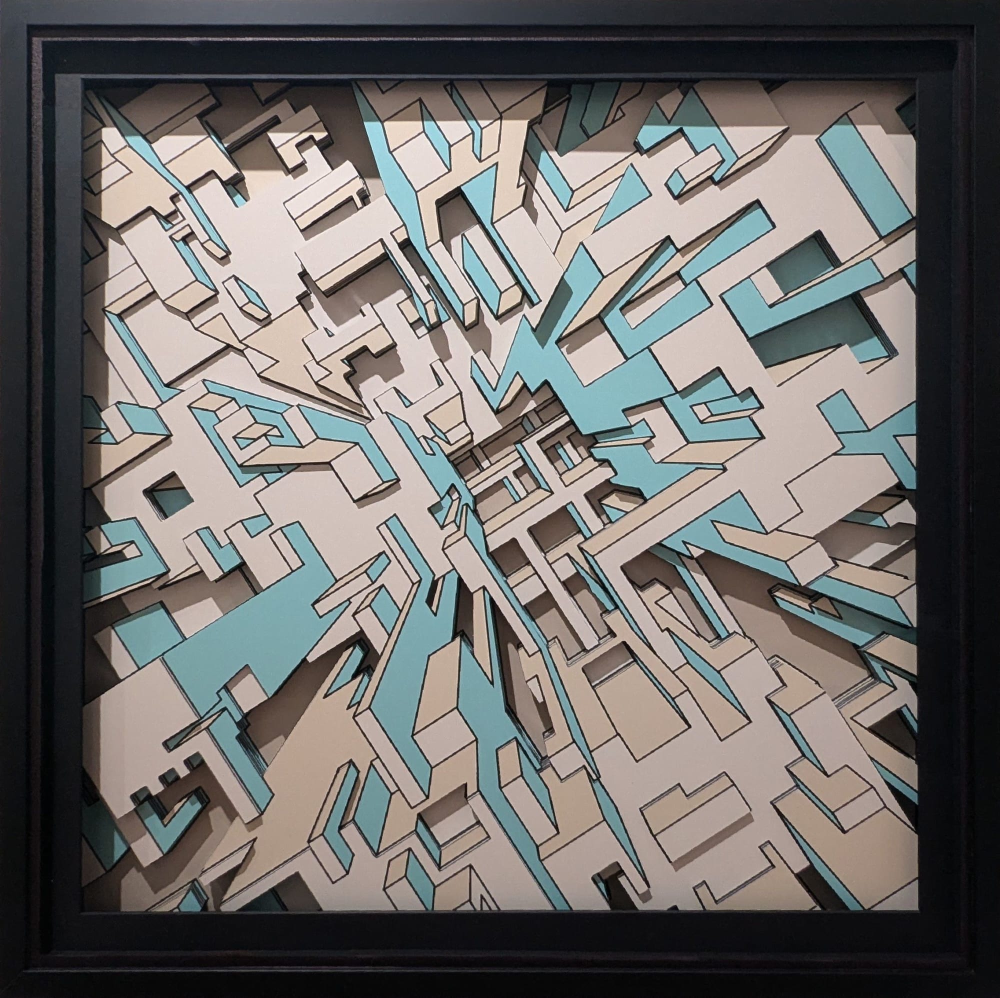 City expansion VOXEL 14 est une œuvre unique imprimée sur de l’aluminium brossé “dibon”. toutes les couches sont ensuite assemblées. Le cadre réalisé sur mesure dispose d’une vitre type musée (anti-reflets et anti UV). L’oeuvre est signée au dos et fournie avec son certificat d’authenticité.