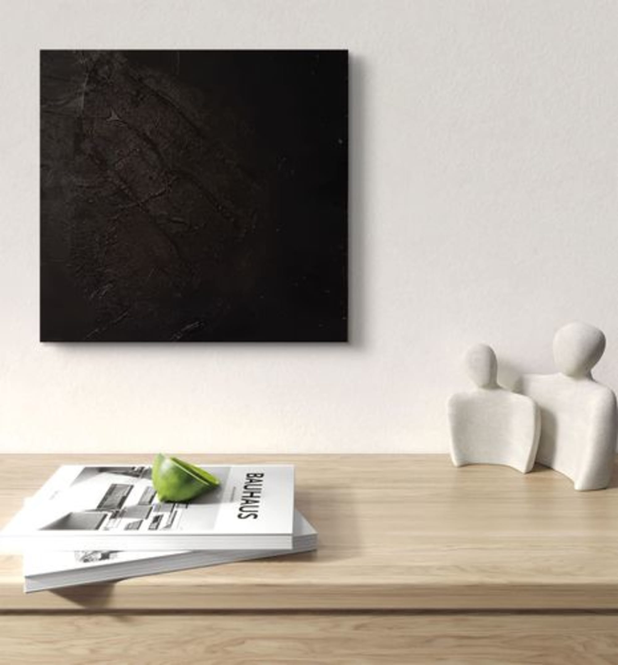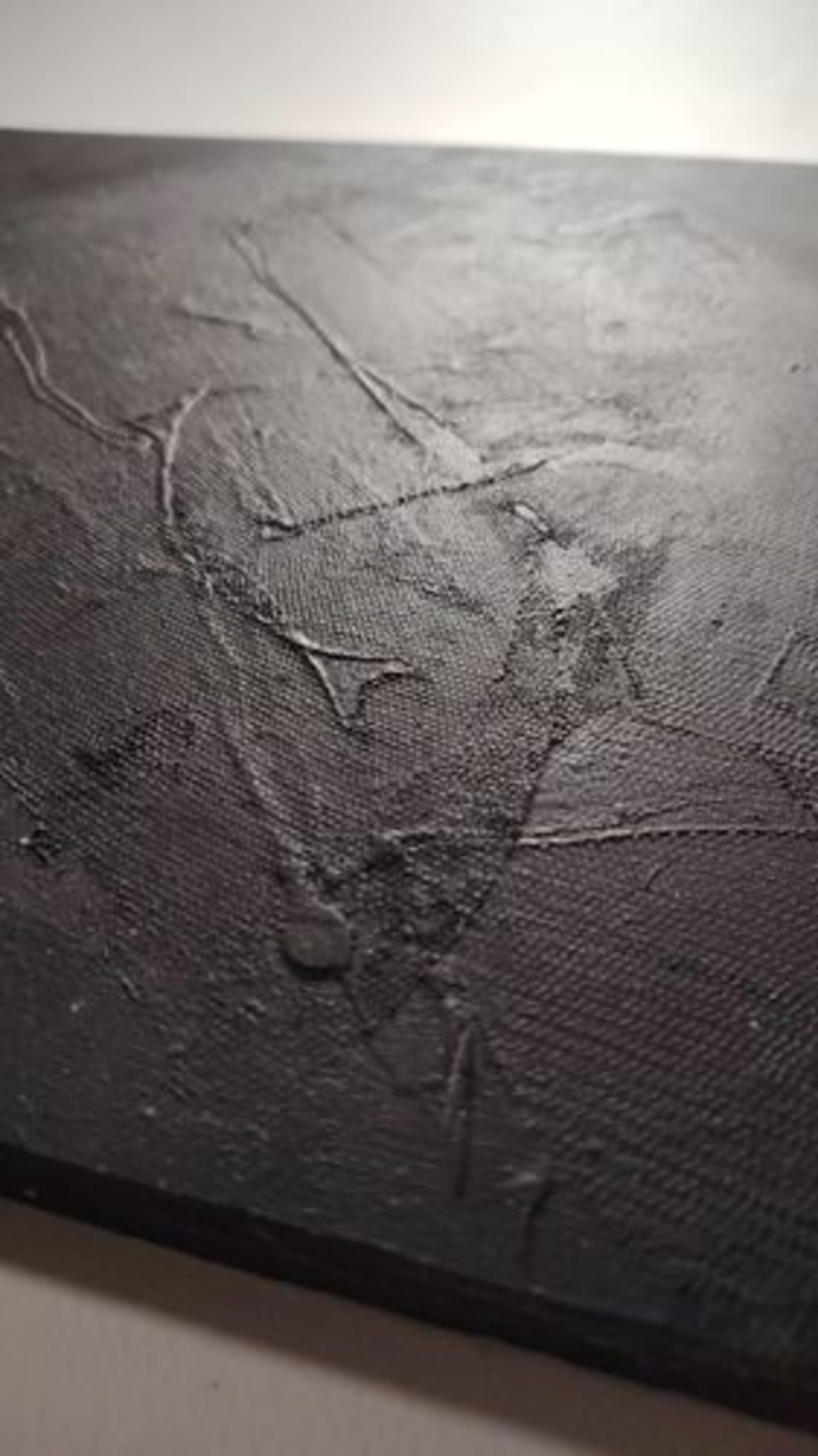 Cette pièce explore la profondeur silencieuse du noir. Les textures s’entrelacent, fines et brutes, comme des empreintes laissées dans l’ombre. Selon la lumière, la surface révèle des éclats subtils, presque imperceptibles, invitant le regard à s’attarder et à plonger dans l’infini d’une matière en mouvement. Une œuvre intime, où l’obscurité devient révélatrice de nuances invisibles.