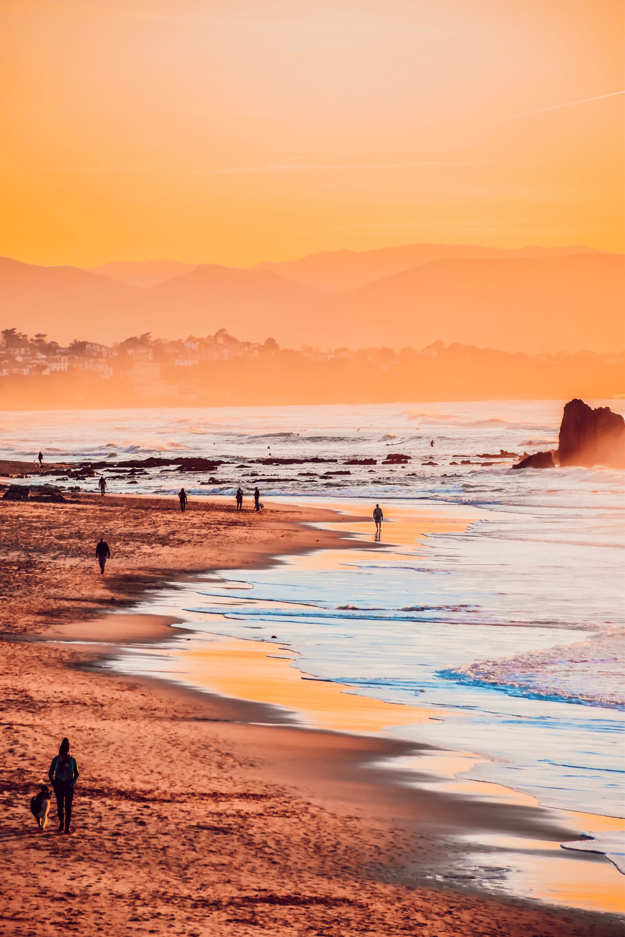 Capturée au cœur du Pays basque, cette photographie saisit un instant suspendu sur la plage d’Ilbarritz, baignée par les derniers rayons du soleil. Le ciel s’embrase de nuances dorées, tandis que l’océan reflète une lumière douce et chaleureuse. Une scène intemporelle, à la frontière du rêve et du réel.