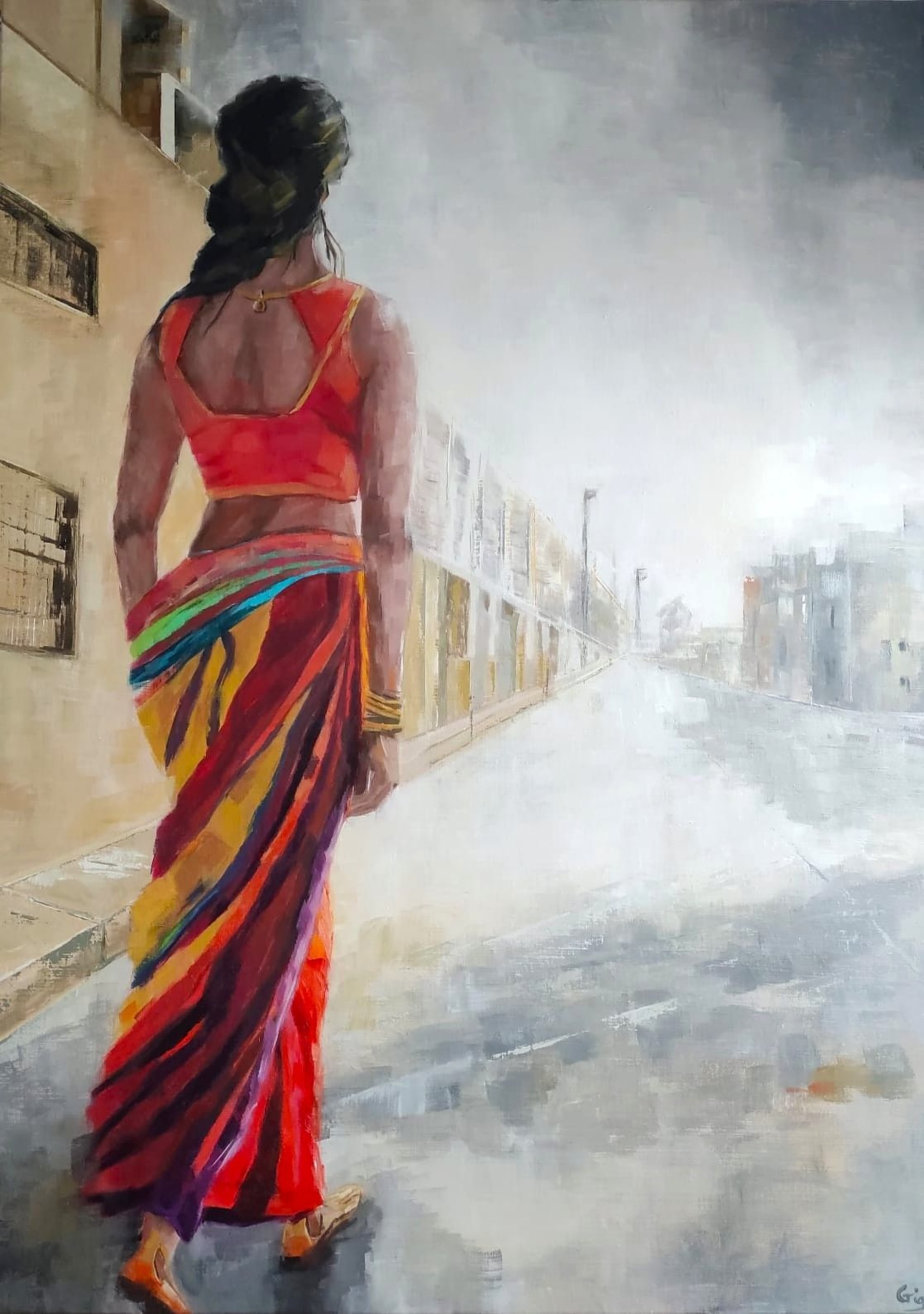 Nous devenons les compagnes et compagnons de route de cette Indienne qui marche vers l’inconnu. Seul l’éclat des vêtements témoigne d’un enracinement culturel profond.