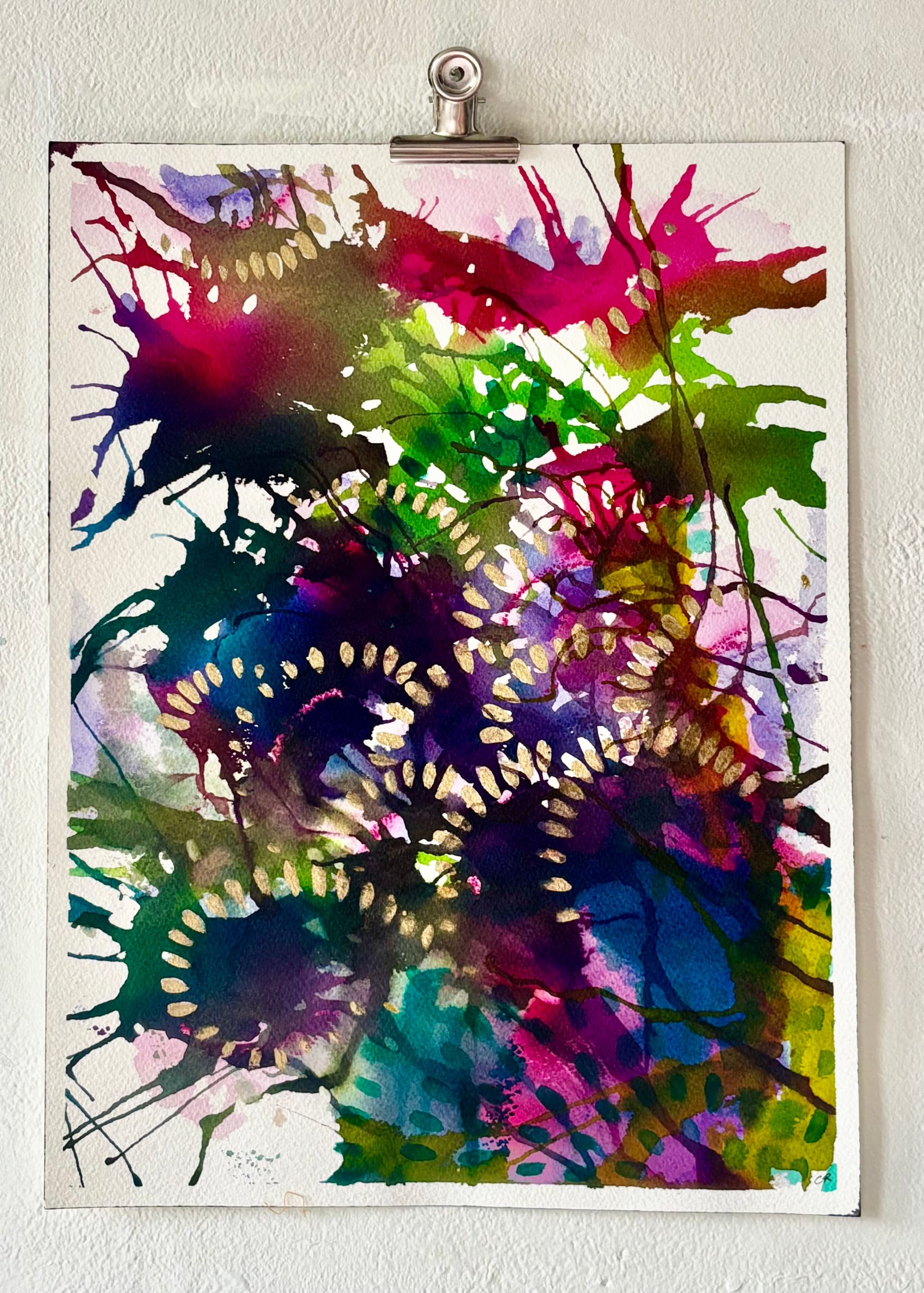 Peinture encre et aquarelle sur papier fait main 100% coton