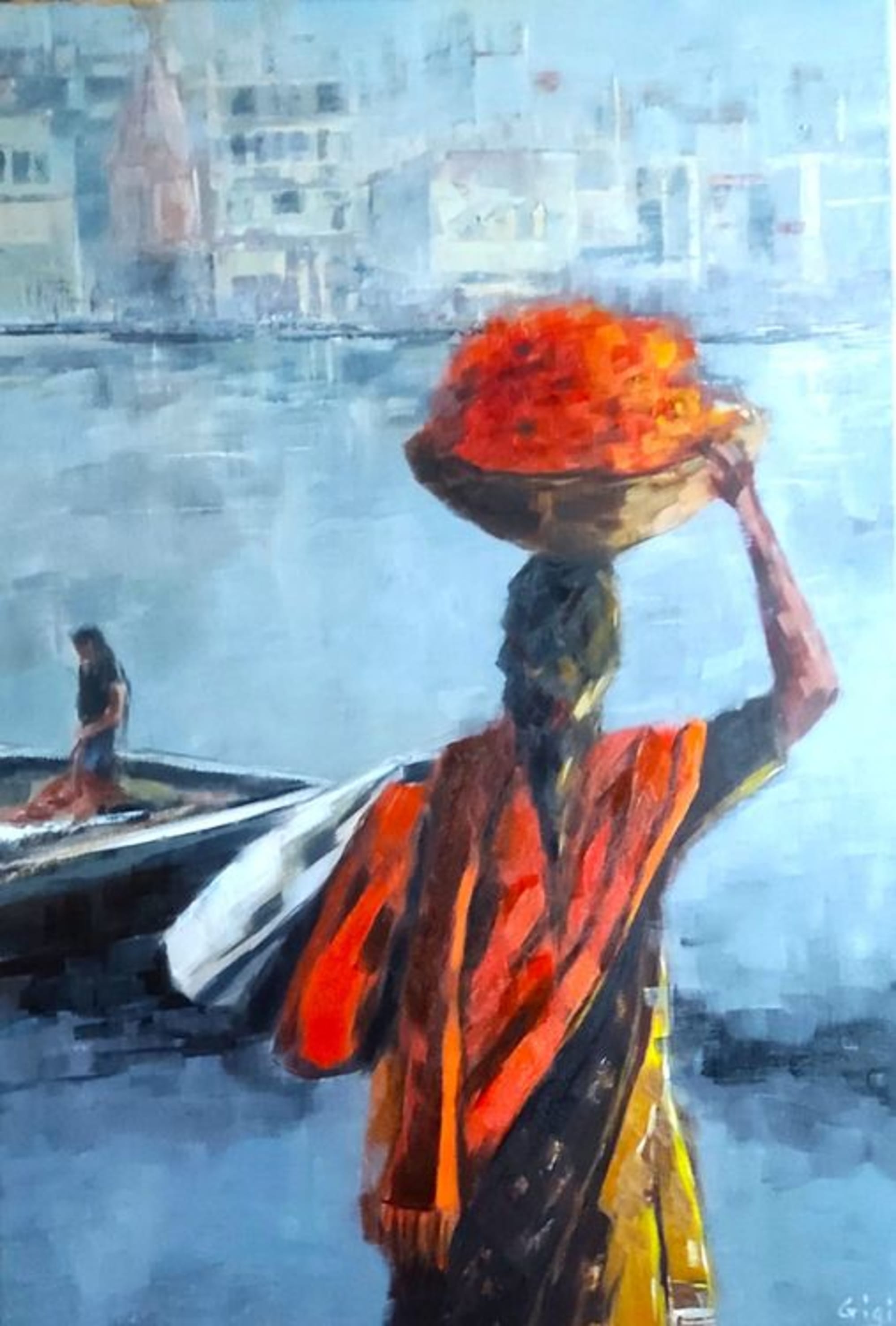 Dans cette toile, j’ai souhaité représenter des gestes du quotidien, la transmission d’un savoir-faire ancestral. Le port, avec son ambiance vivante, sert de toile de fond à cette célébration de la vie, où le travail et la culture se rejoignent.