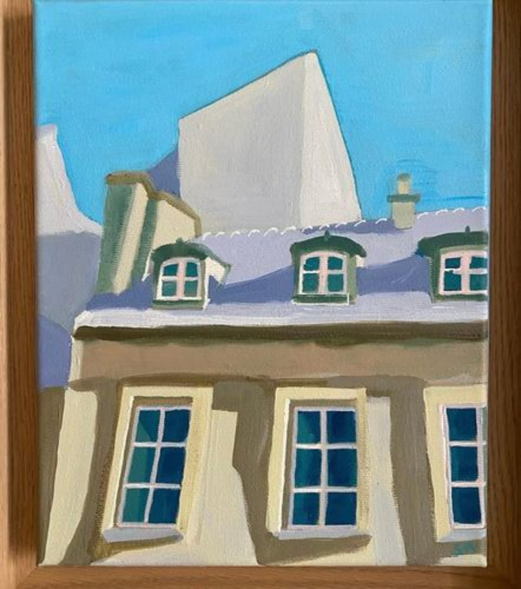 En face de chez moi, il y a ce bâtiment classé qui, quand le soleil l’éclaire, se creuse d’ombres. Les volumes ressortent, les corniches et les moulures sont comme vivantes et c’est un jeu de changer les teintes!
