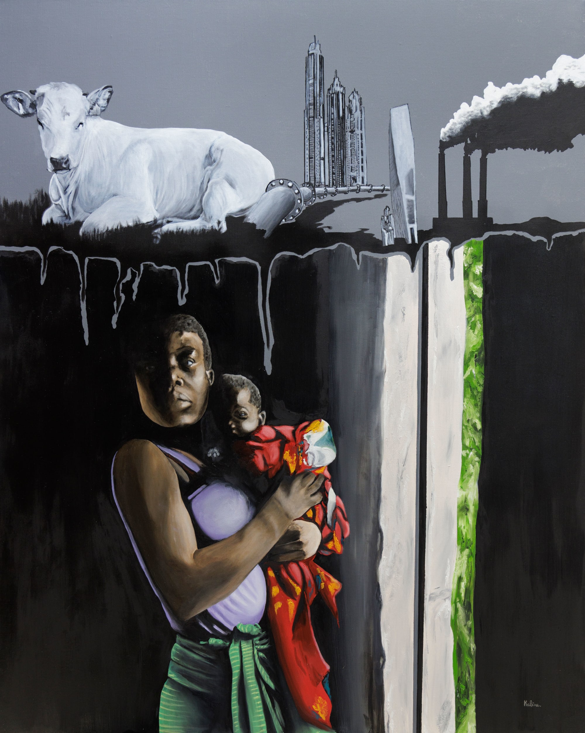 J’utilise cette œuvre pour sensibiliser le public aux liens entre le réchauffement climatique et les injustices sociales, en particulier celles qui touchent les plus vulnérables. ‘‘Droit à l’enfance contre réchauffement climatique’’ s’inscrit dans le courant de l’art écologique, cherchant à éveiller les consciences sur les injustices engendrées par les changements climatiques et à promouvoir des actions concrètes pour protéger les droits des enfants.