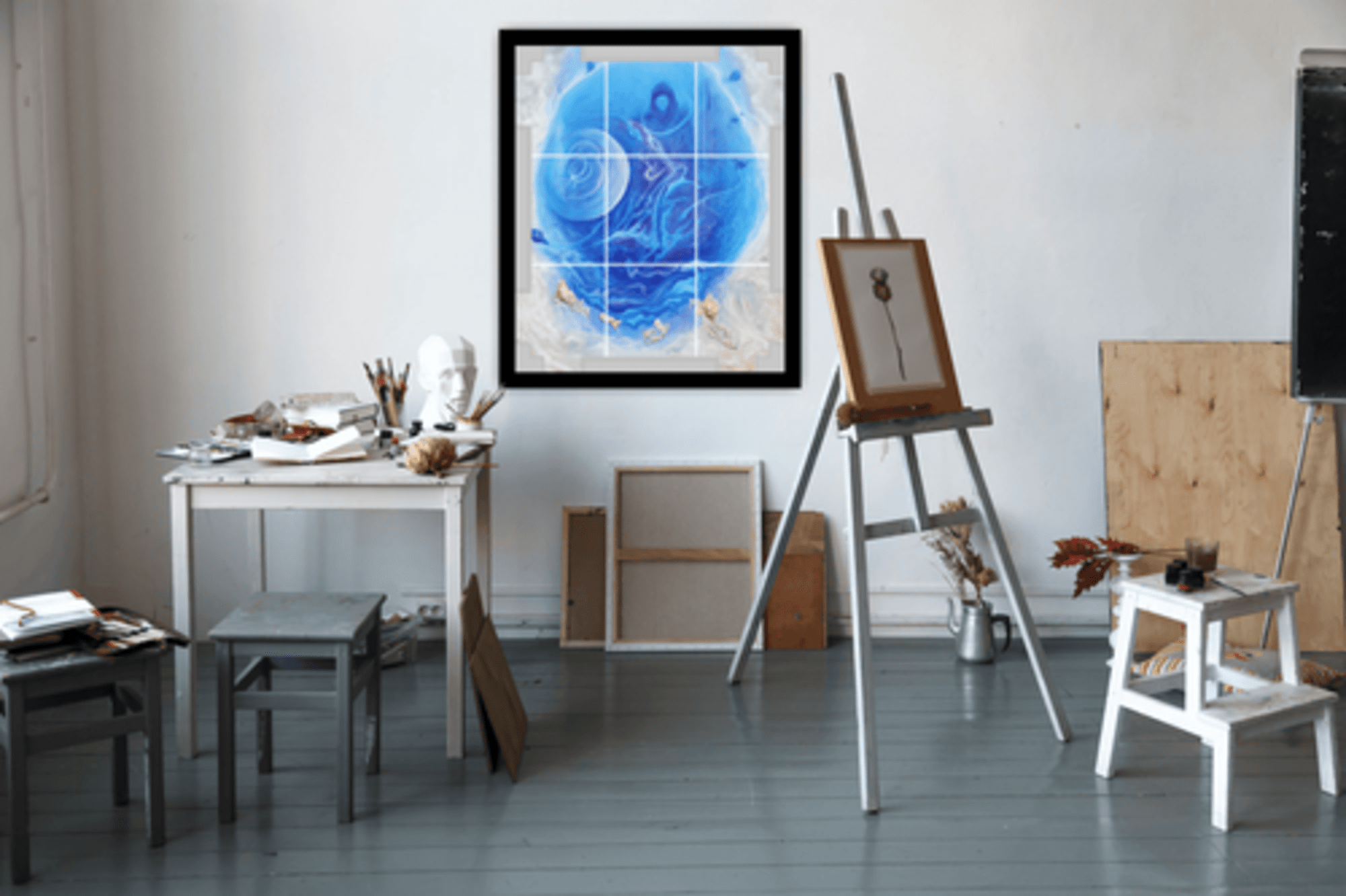 Le tableau est vernis en mat à la bombe aérosol avec 2 couches pour une protection à long terme.