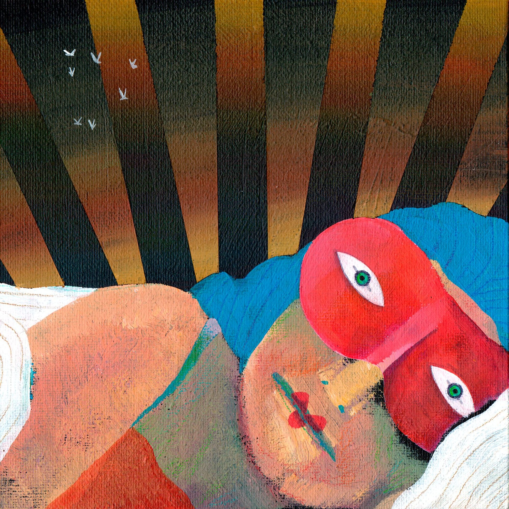acrylique, crayons de couleur & marqueur à peinture noir sur carton entoilé