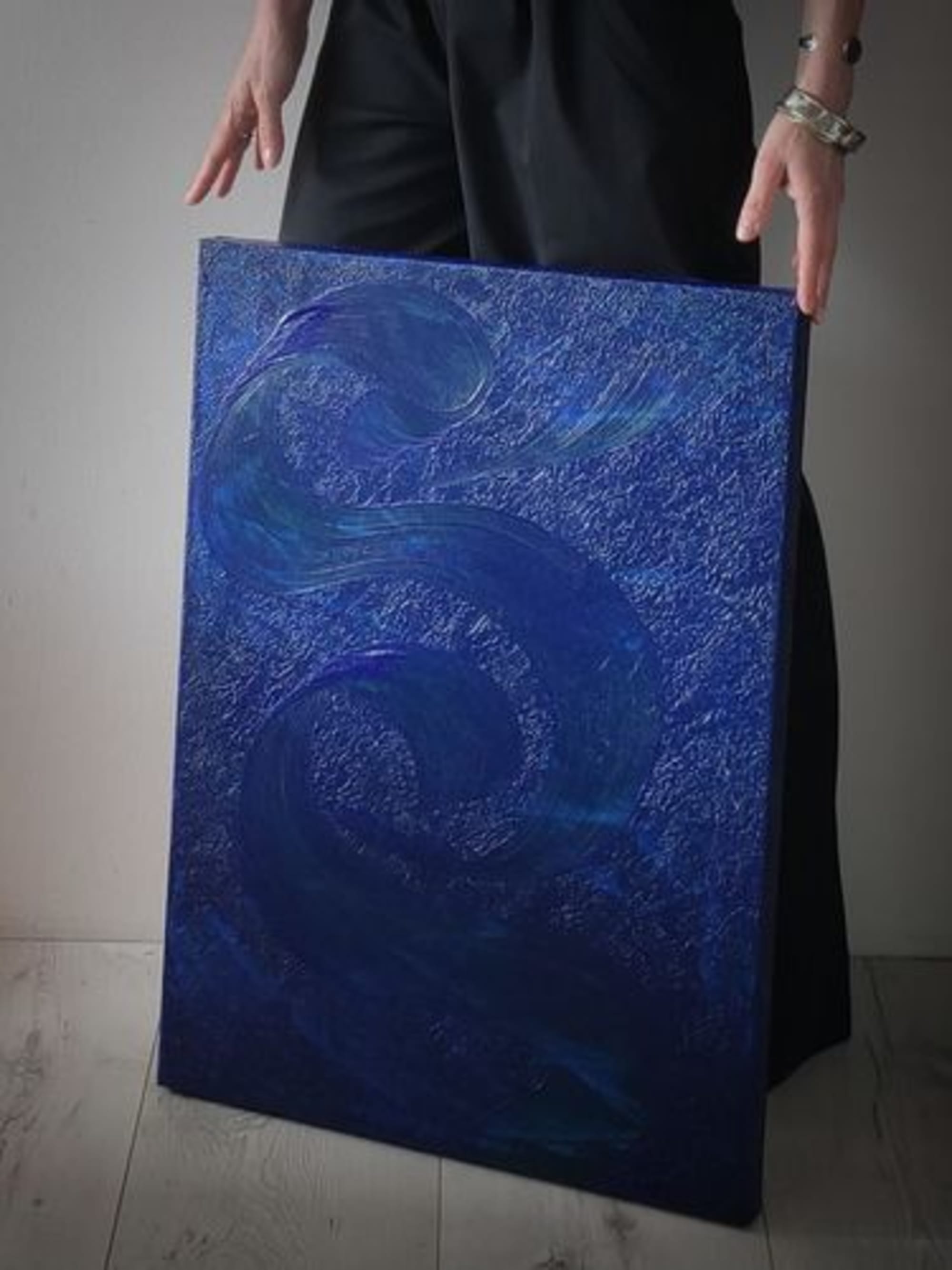 La modulation de la matière est rythmée par le geste, donnant à voir un jeu d’opacités, de transparences et de reflets.