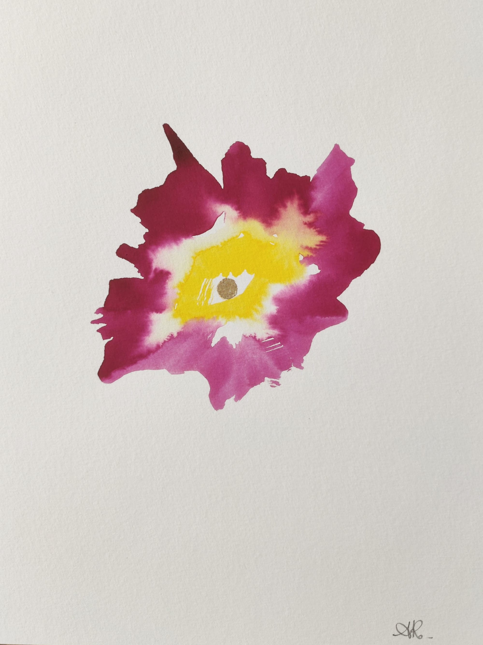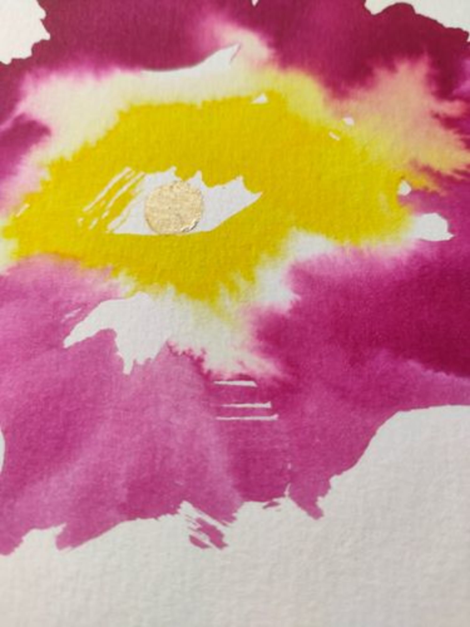 Matériaux : Encre, Acrylique, flocons métal à dorer.