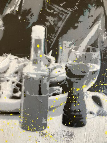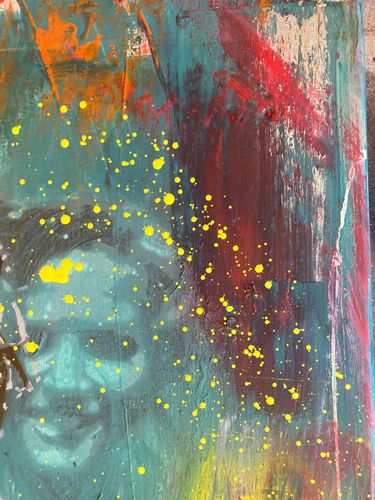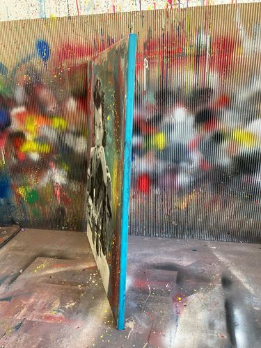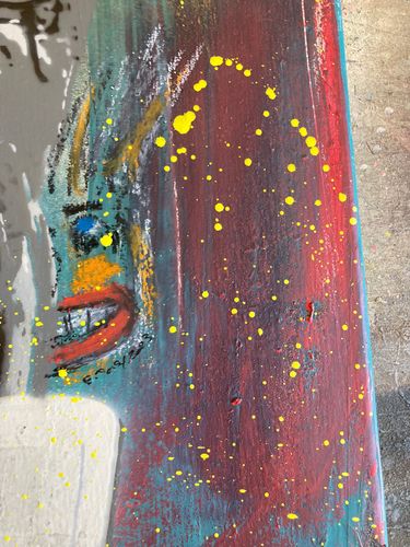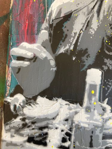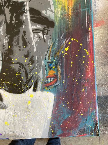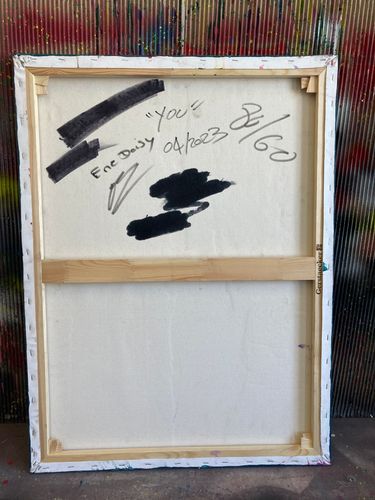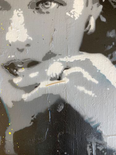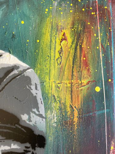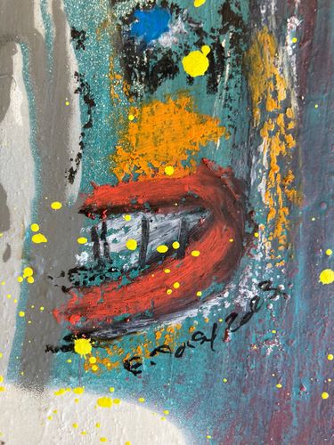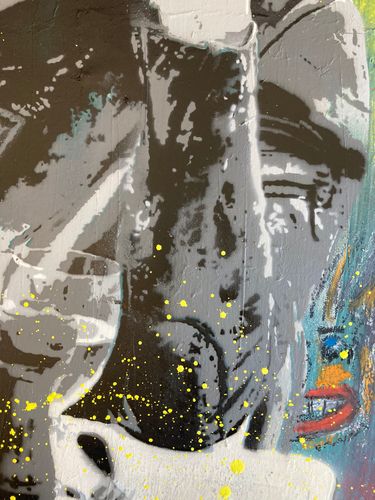 Les œuvres d’Eric Doisy ont une certification i-CAC (indice de cotation des artistes certifiés). Toile en coton 80/60 en techniques mixtes, travail sur plusieurs couches dont les 1éres en collage sont devenues invisibles et ensuite à l’acrylique avant de terminer à la bombe aérosol….