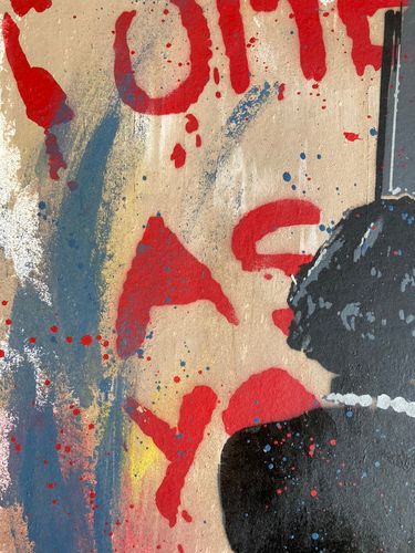 Les œuvres d’Eric Doisy ont une certification i-CAC (indice de cotation des artistes certifiés). 5éme de la série de 6 en 80/60 sur papier contrecollé sur bois avec encadrement plastique. Travail à l’acrylique et à la bombe aérosol avec les techniques du pochoir et un soupçon de pastel grasse pour la signature graphique.