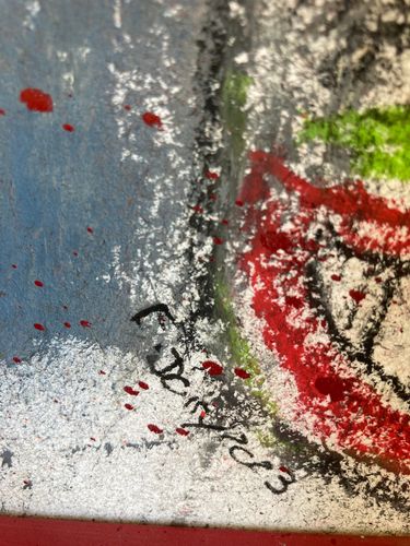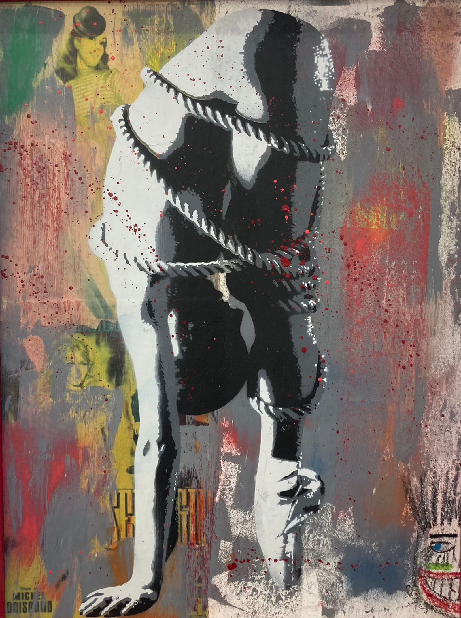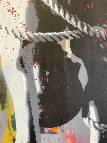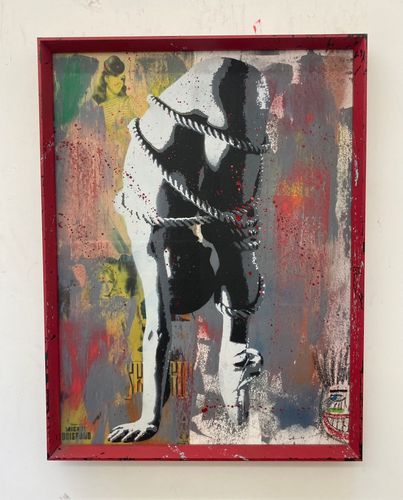 Les œuvres d’Eric Doisy ont une certification i-CAC (indice de cotation des artistes certifiés). Réalisation sur papier 300grs de rénovation contrecollé dans un cadre rouge vieilli (voir photos) en 80/60. C’est le 3éme de la série des 6 sur papier contrecollé en 80/60 avec cadre. Thème sur le lâcher-prise, l’enfermement que l’on peut avoir dans notre vie et nos préjugés. Travail à l’acrylique et la bombe aérosol.