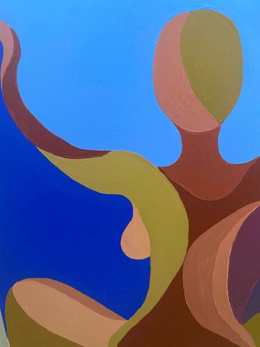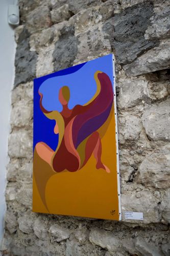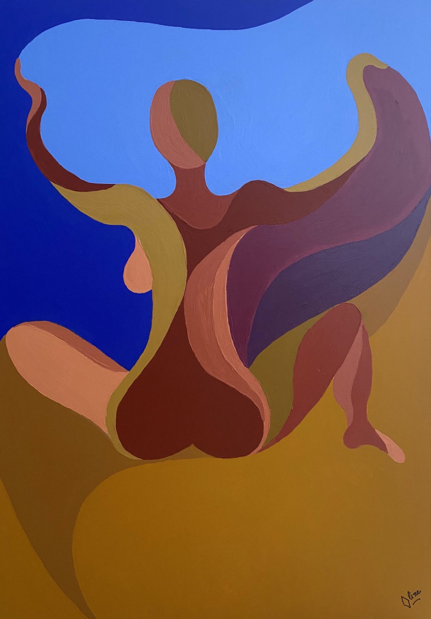 Sensible et laissant la part belle aux émotions, mes sources d’inspiration et objets de travail se trouvent dans le Sud dont je suis native et qui m’habite, les femmes fortes de leur puissance et de leur douceur, le corps ainsi que le couple. Style naïf, couleurs primitives, contraste entre courbes et angulosités constituent ma signature.