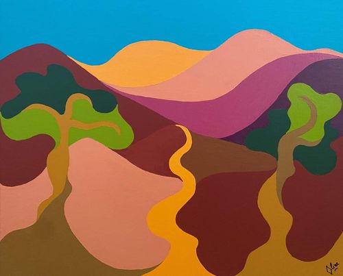 Sensible et laissant la part belle aux émotions, mes sources d’inspiration et objets de travail se trouvent dans le Sud dont je suis native et qui m’habite, les femmes fortes de leur puissance et de leur douceur, le corps ainsi que le couple. Style naïf, couleurs primitives, contraste entre courbes et angulosités constituent ma signature.