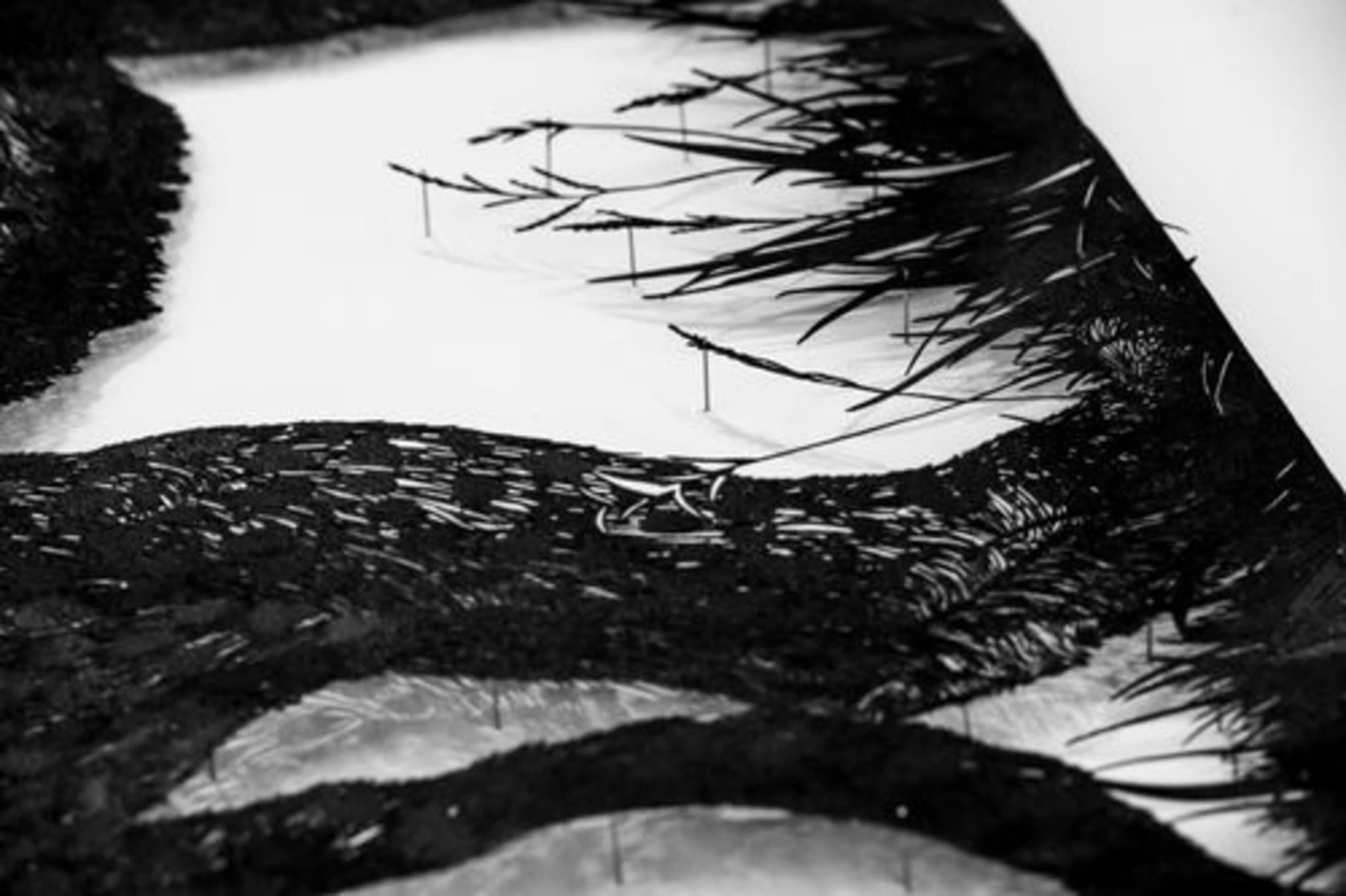 Les différentes espèces qui composent notre planète vivent en interactions les unes avec les autres. Un simple grain de riz peut faire pencher la balance et notre écosystème s’en trouve alors menacé. Mes œuvres en papier transcrivent cette fragilité ; à l’aide de mon scalpel, je travaille cette matière comme une dentelle. Au fur et à mesure de mes découpages, ma feuille se fragilise et s’en trouve menacée. Mes tableaux prendront vie, si je fais preuve de délicatesse dans mes gestes, au même titre que la nature qui réclame de la douceur.